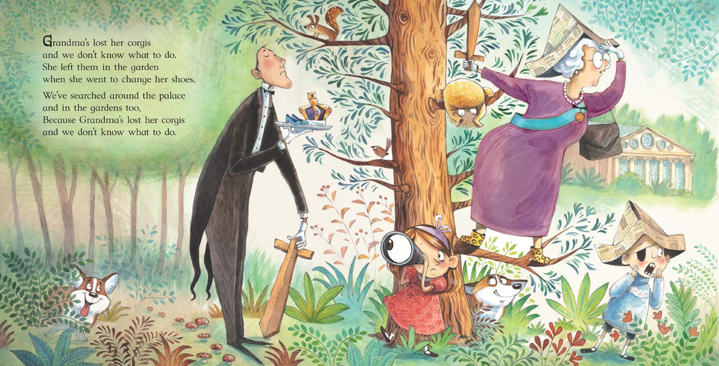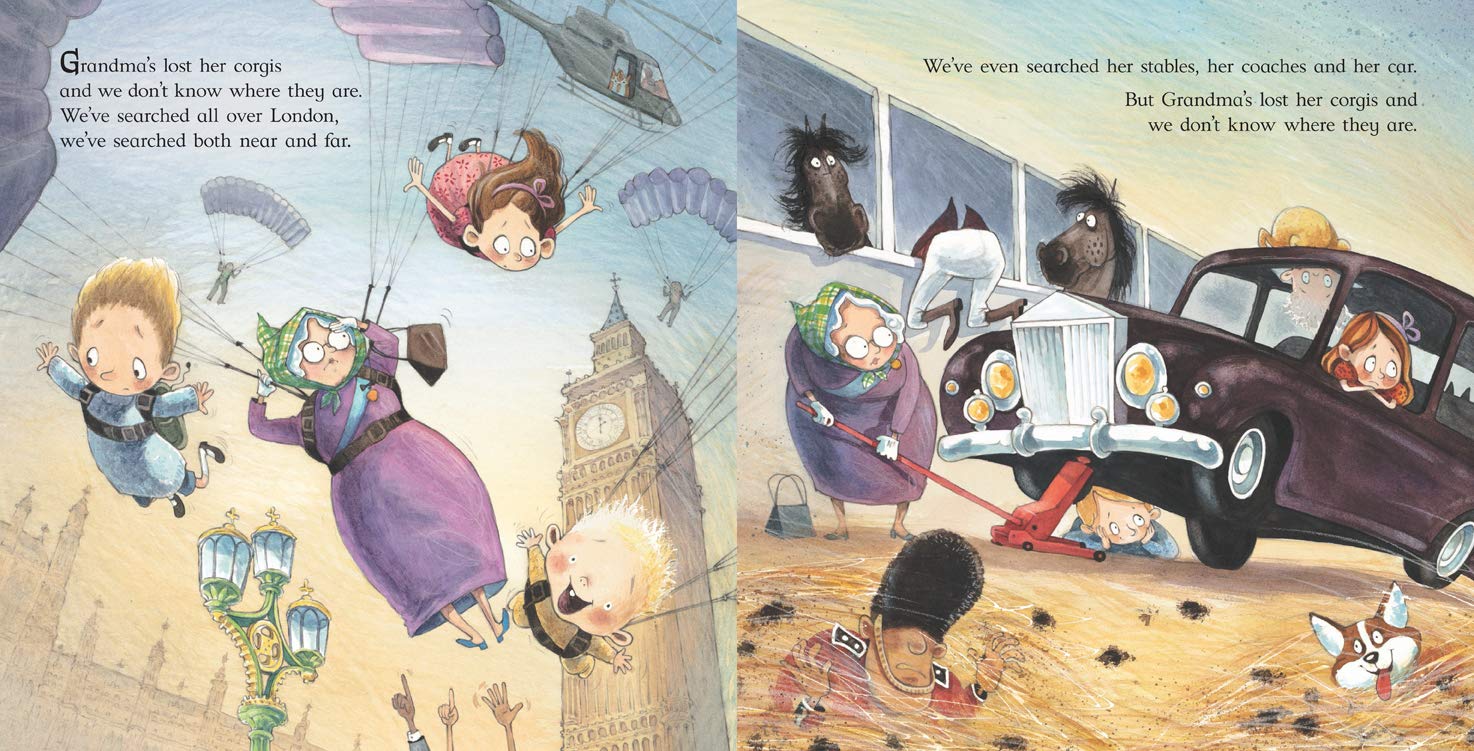 When Queen Elizabeth II loses her corgis, her grandchildren search Buckingham Palace, its grounds, and the city of London to find the precious pets. The Queen even calls out the guards and the army! Sharp-eyed young readers will spy the smiling dogs on every page happily watching the chaos unfold. This humorous, fast-paced adventure will have kids—and their parents—laughing out loud.