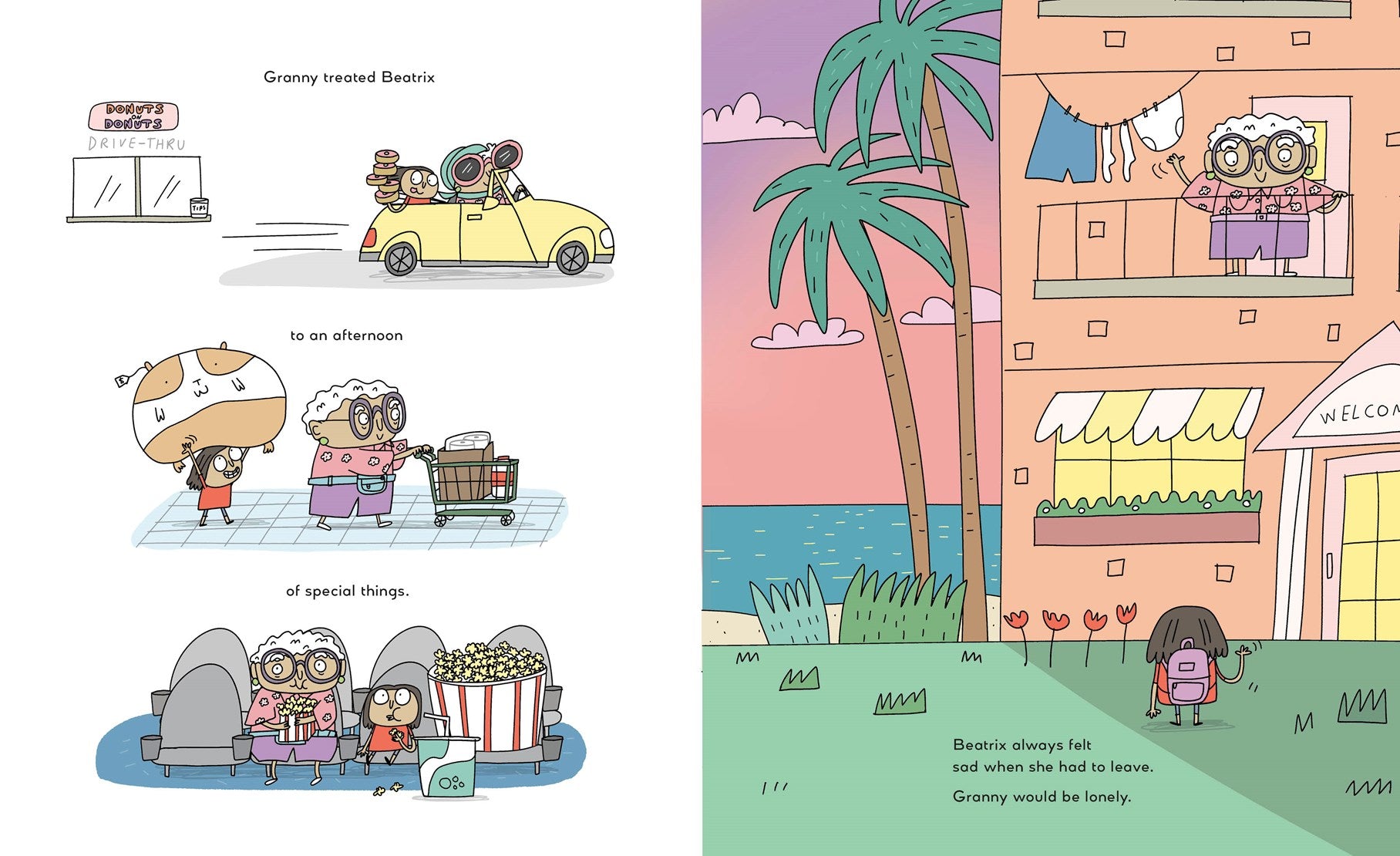 Every weekend Bea goes to visit her grandmother, and Granny treats her to an afternoon of special things, like going to the movies and shopping. Bea is always sad to leave at the end of the weekend because she worries that Granny will be lonely without her.