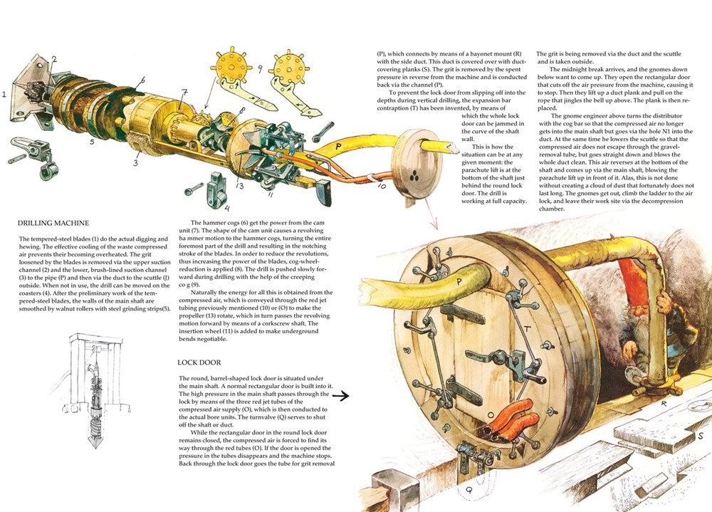 The authors learn of the tender emotional life of a gnome; they see and diagram the mechanics of ingenious gnome technology; they observe how gnomes administer justice in the wild; they are told how fairy tales first began (Little Red Riding Hood was actually a gnome!); and, best of all, they are allowed to see parts of the gnomes’ fabled Secret Book.