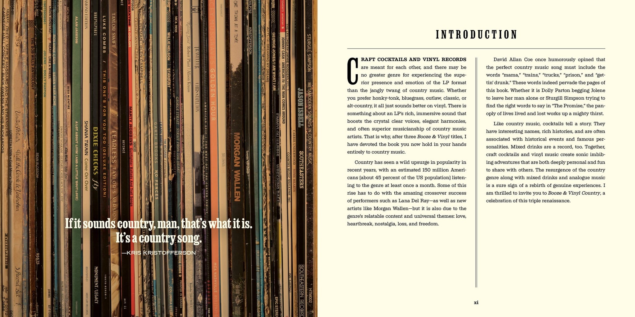 Together, craft cocktails and vinyl music create sonic imbibing adventures that are both deeply personal and fun to share with others. Saddle up and let Booze & Vinyl Country take you on a journey through the harmonies, heartbreaks, and highs of country music. Covering a range of favorite movements and styles, this is your guide to more than sixty of the most beloved country albums from the 1950s to the present. Each entry features “liner notes” on the album and two accompanying boozy beverage recipes that complement the music or mood, or connect the drink to the artist. Select food recipes and full-color photography throughout complete the experience.