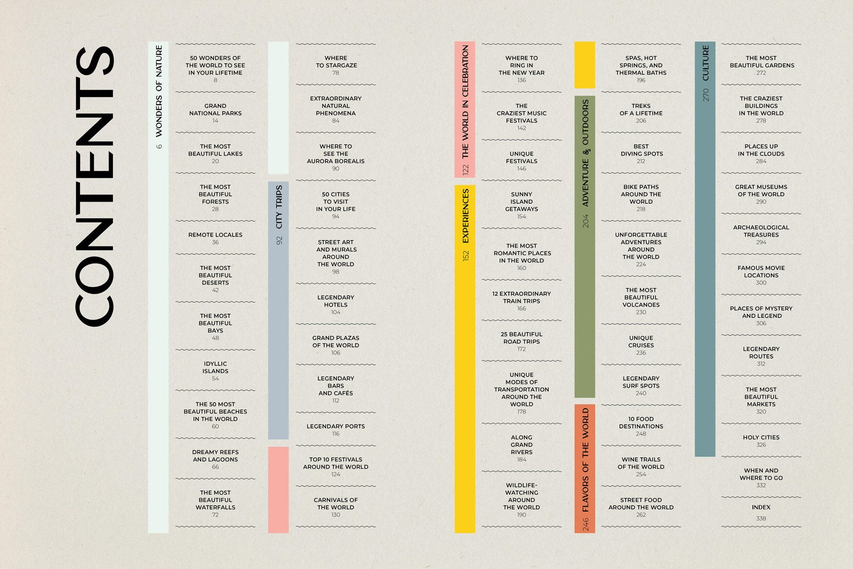 Filled with natural wonders, dazzling celebrations, quirky festivals, road trips, bucket-list sites, epic outdoor adventures, and cultural treasures, Wanderlust is the definitive book for the curious traveler.