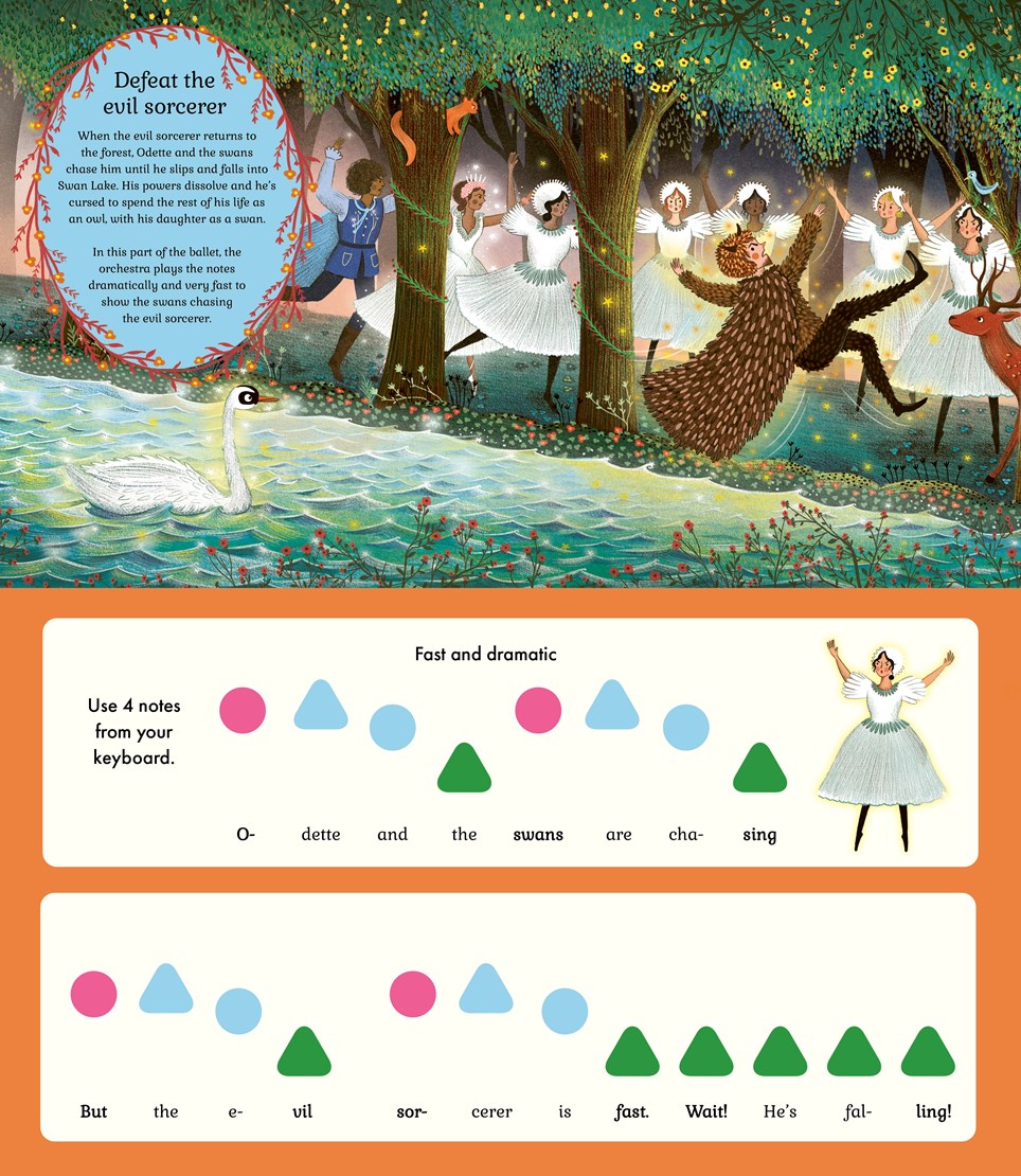 The Story Orchestra: I Can Play: Swan Lake invites children to step into the story and make the music themselves – no lessons needed, just a sense of fun. With a built-in keyboard that sounds just like a piano and colour-coded notes on every page, children can play along as they follow the scenes from Tchaikovsky’s magical ballet.