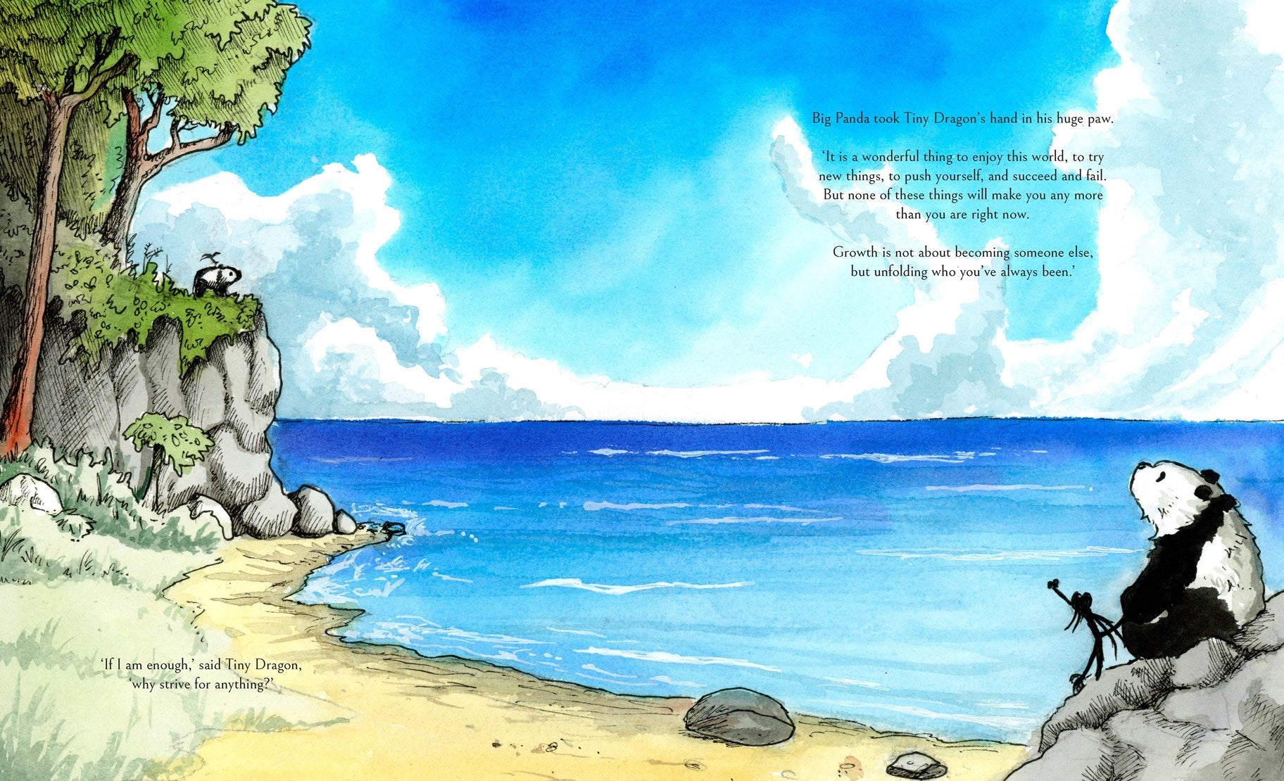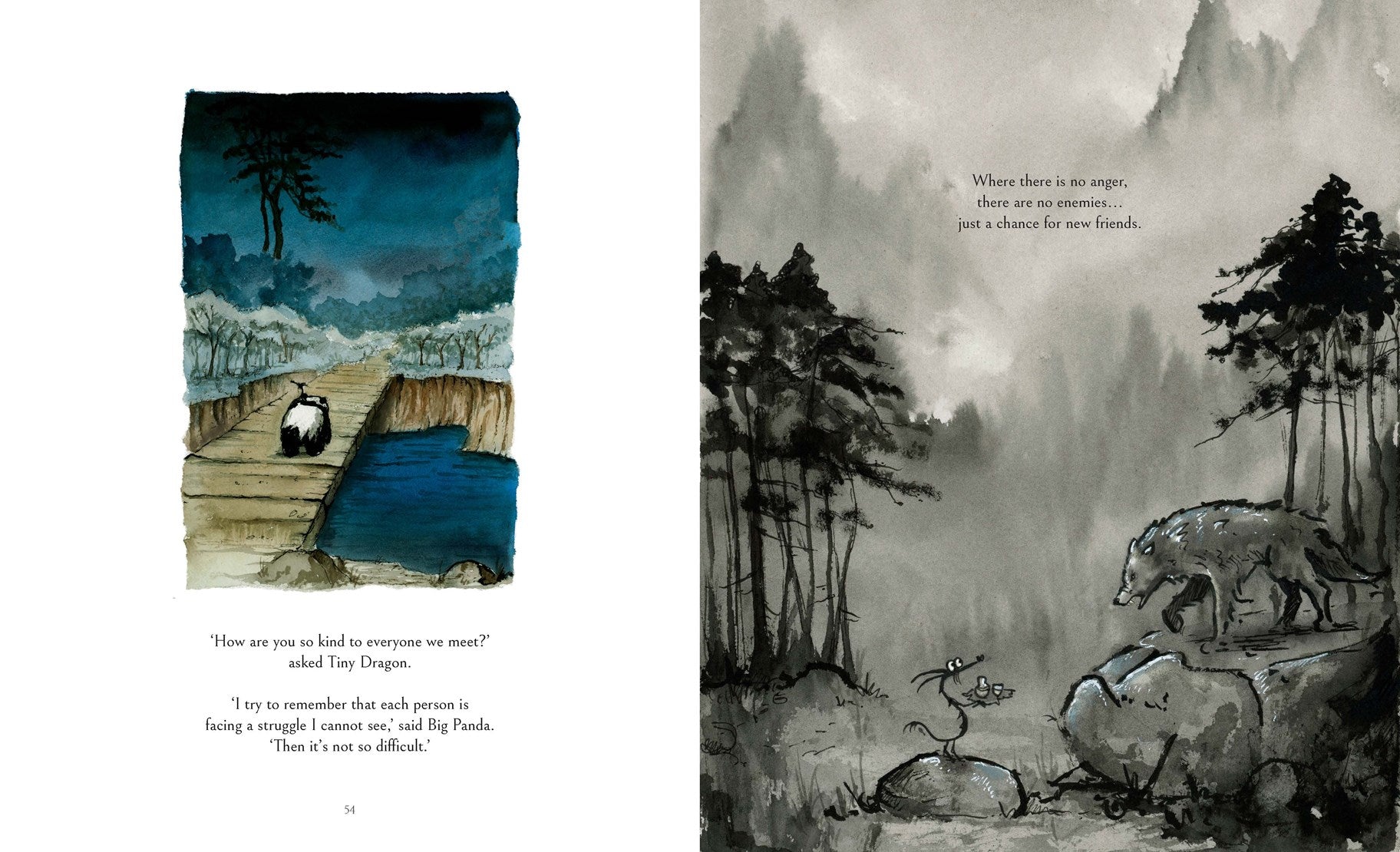 Big Panda and Tiny Dragon find a map that leads to the most beautiful place in the world, and they set off. But their journey is not easy. They encounter seven ordeals that challenge them to face their personal struggles and fears—like hopelessness, anger, and self-doubt. As they work through these demanding environments together, they realize that although you may enter a situation in a state of conflict, you can always exit it with a sense of peace and calm.