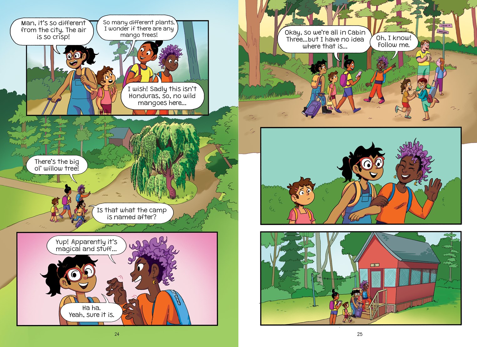 Sue is heading to Camp Willow this summer! She’s looking forward to hiking, archery, and making comics in the fresh air. She’s especially excited about LARPing (live-action role-playing) and can’t wait for the freedom of being away from home. But she won’t be far from family because her big sister, Carmen, is a camp counselor and her little sister, Ester, is a fellow camper and won’t give her any space! All Sue wants is to make memories with her friends, but they’re assigned to only a few of the same activities. To make matters even worse, her best friend, Sam, has a best camp friend named Marisol? And Sue’s good friend Izzy has a crush on Sue?! This summer isn’t at all going as planned!
