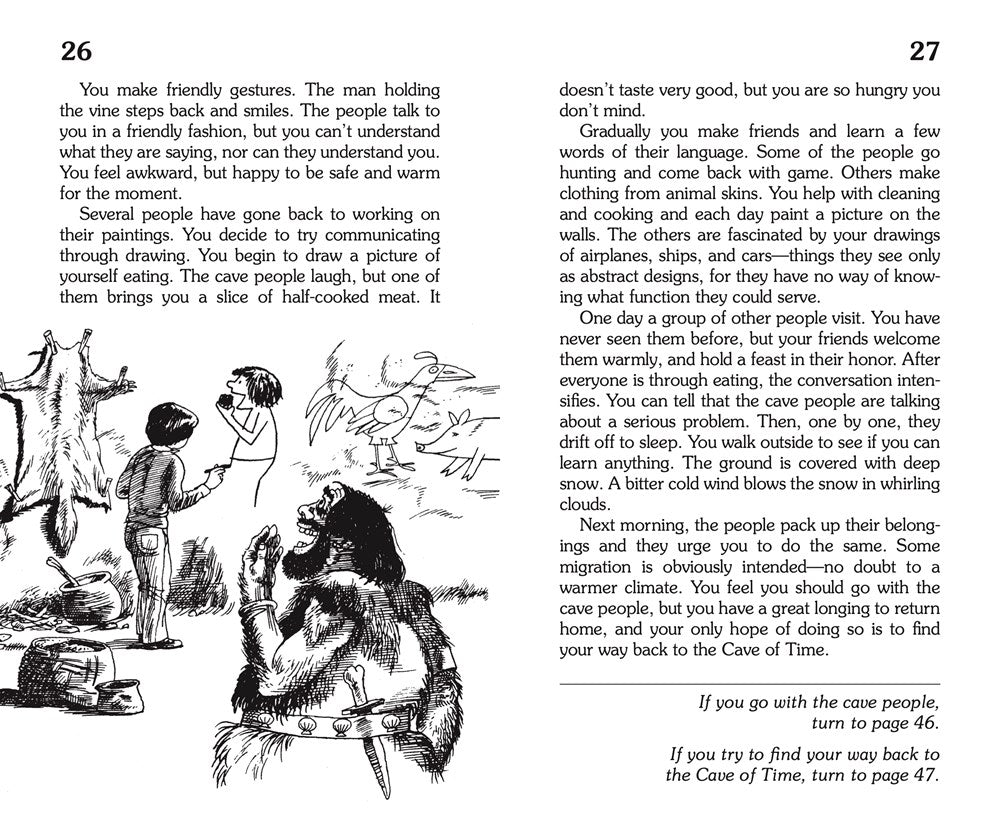 YOU are hiking in Snake Canyon when you find yourself lost in the strange, dimly lit Cave of Time. And depending on which of the curving paths you take, you’ll emerge into a different thrilling moment in history. Will you be adopted into a band of early humans and hunt down a woolly mammoth? Will you be captured by medieval knights and put on trial before a king? Or will you find yourself a passenger on board the Titanic moments before it hits an iceberg? With every twist and turn you choose, an entirely new adventure awaits you in the past … or maybe even the future!