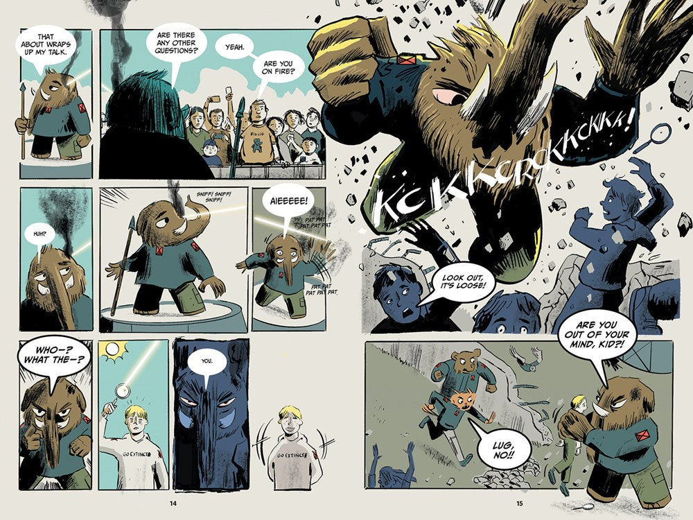 After stopping Dr. Z’s nefarious plan and rescuing the unicorn horn, things haven’t quite been the same for the Extincts. In order to pay the bills and support themselves, they open a zoo and gift shop. Scratch, Martie, Quito, and Ursa think it’s a great chance to educate the public and teach people to be better to the environment. But Lug isn’t so sure that this is the best use of their time and energy. After a fiery and near-tragic incident, Lug decides to leave the team and goes to do work that he thinks will actually make a difference: helping a group of smoke jumpers stop the wildfires in California. But it seems like the fires they’re stopping may not be so natural—someone seems to be causing them to try to lure Lug to follow . . . It’s going to take the help of all the Extincts to get to the bottom of it and save the day!