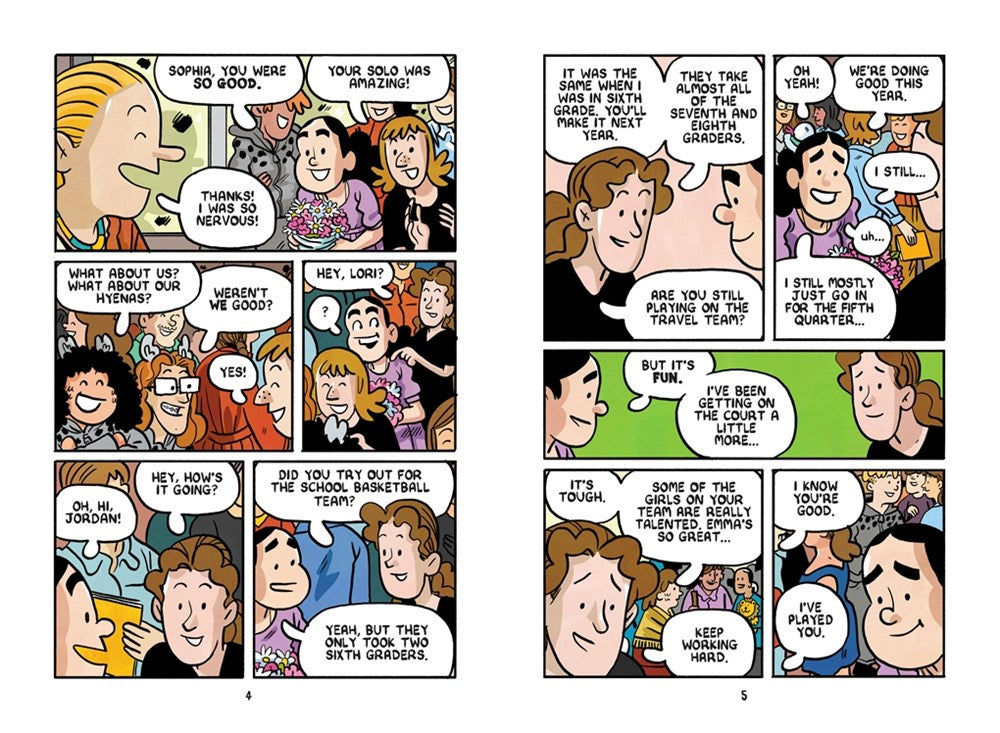 The second book in this middle-grade graphic novel duology about a girl who deals with her insecurities and awkwardness through her love of basketball and her desire to get better at the game.