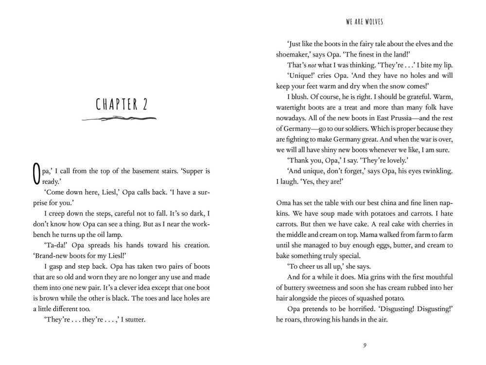 When the Russian Army marches into East Prussia at the end of World War II, the Wolf family must flee. Being caught by the Russians or the Americans would be the end for them. Liesl, Otto, and baby Mia’s father has already been captured, and they get separated from their mother in a blizzard after only a few days on the run.