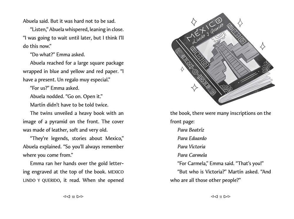 Nine-year-old twins, Emma and Martín, couldn’t be more different in their personalities, interests, and even their looks. But one thing they absolutely agree on is that moving from Cuernavaca, Mexico, to Illinois is a terrible idea. Unfortunately, they’re not given a choice when their dad lands his dream job as a middle school principal in Chicago. To help the twins stay connected to their Mexican heritage, their abuela gifts them a book of Mexican legends. The book turns out to be more than a going away present…it’s a magical item that transports them directly into the legends!