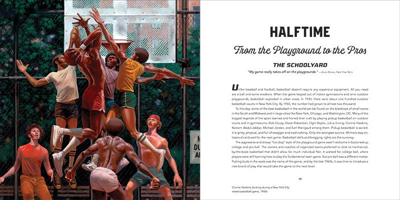 The sage voice of an elder player narrates the journey from the early days of the slow game of “basket ball” to today’s dazzlingly athletic and fast-paced sport. Engaging profiles of revolutionary players—including Wilt Chamberlain, Magic Johnson, Michael Jordan, LeBron James, and Stephen Curry—are featured, along with notable quotes from major figures of the game. With each breathtaking page turn, fans young and old will learn the gripping story of the all-American game and meet its iconic, indomitable heroes.