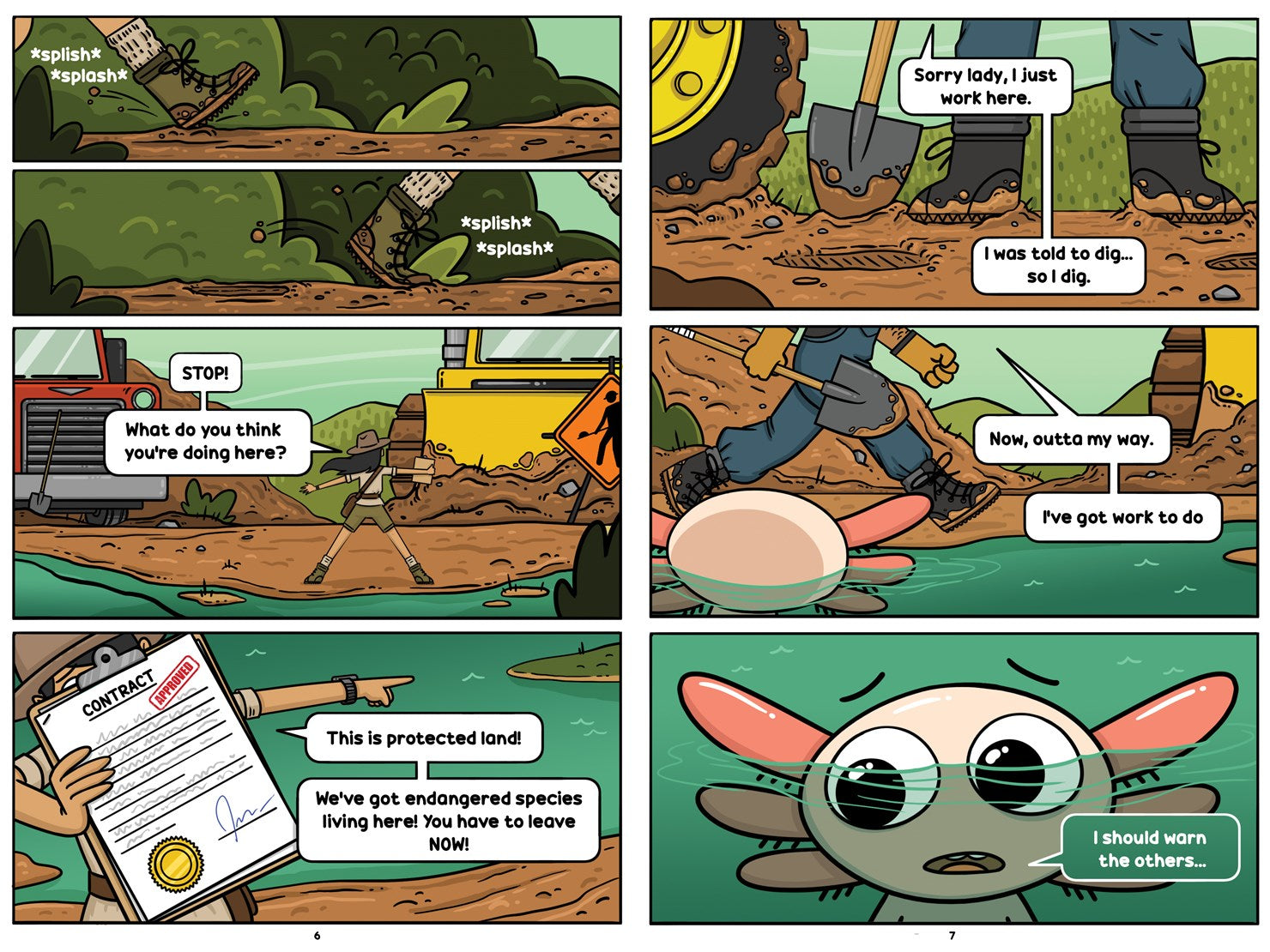 It's Max's first day at Coral Elementary school. The school is filled with marine animals, like dolphins, crabs, and octopus. But none of the other students have ever seen an axolotl before... and they have SO MANY QUESTIONS. Where did Max live before? Is it true he can regrow any of his limbs? What happened to his old friends? This is too much attention for Max! Hiccup! Uh-oh... Max gets the hiccups when he's nervous. Can this little axolotl adjust to his new underwater school or will the pressure just be too much? This silly and sweet graphic novel explores themes of friendship, nature conservation, and so much more!