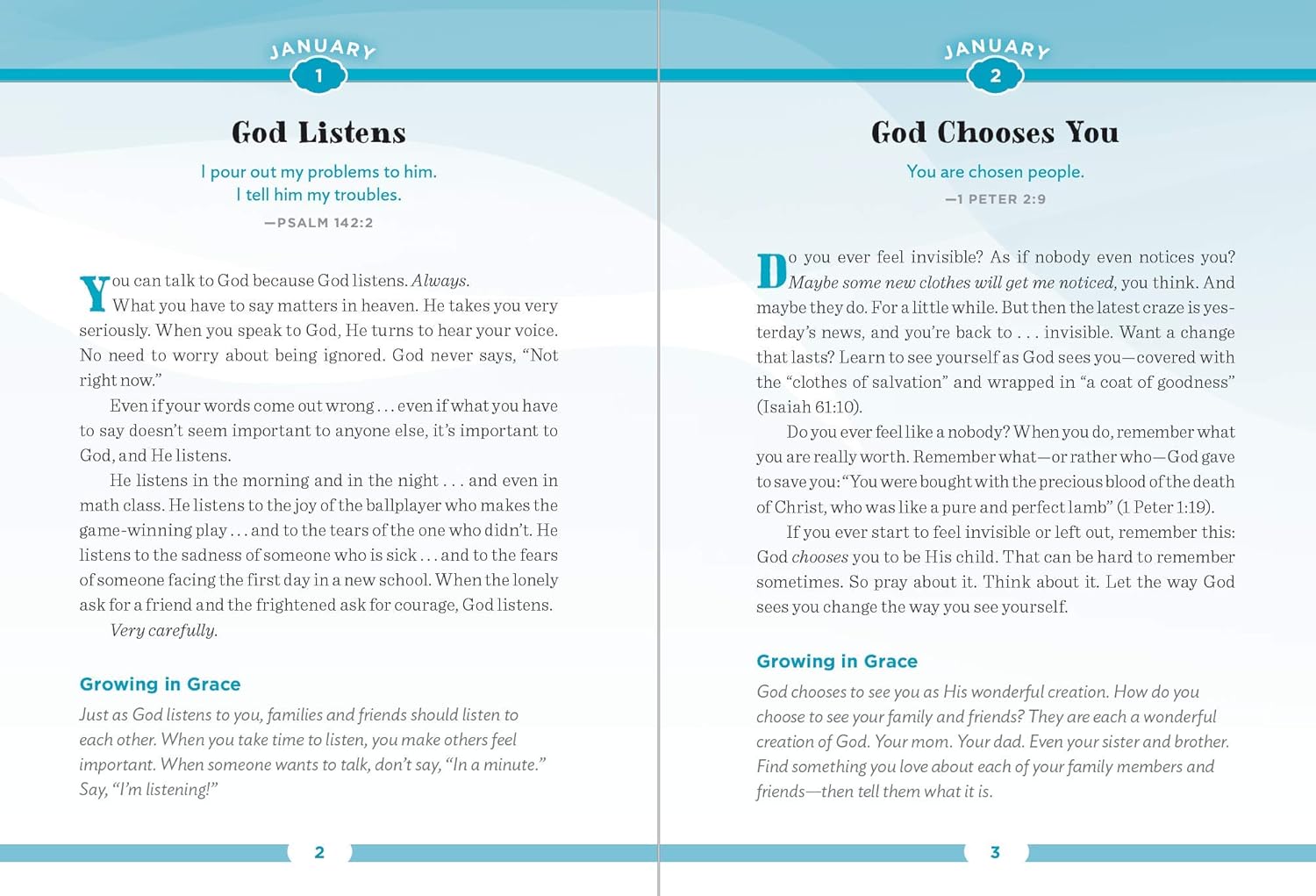 - includes a “Growing in Grace” opportunity with each devotion, offering practical and easy-to-do activities to help kids apply God’s grace—because giving grace is just as important as receiving it; and