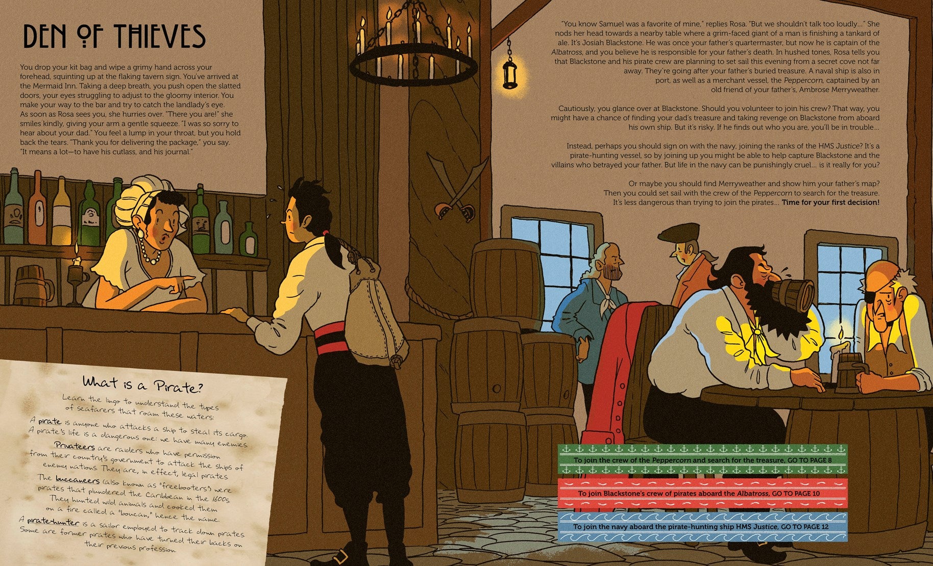Will you head out to search for the treasure, sign on with a crew of pirate-hunters, or embark on the riskiest course of all: joining forces with the pirates who betrayed your father?