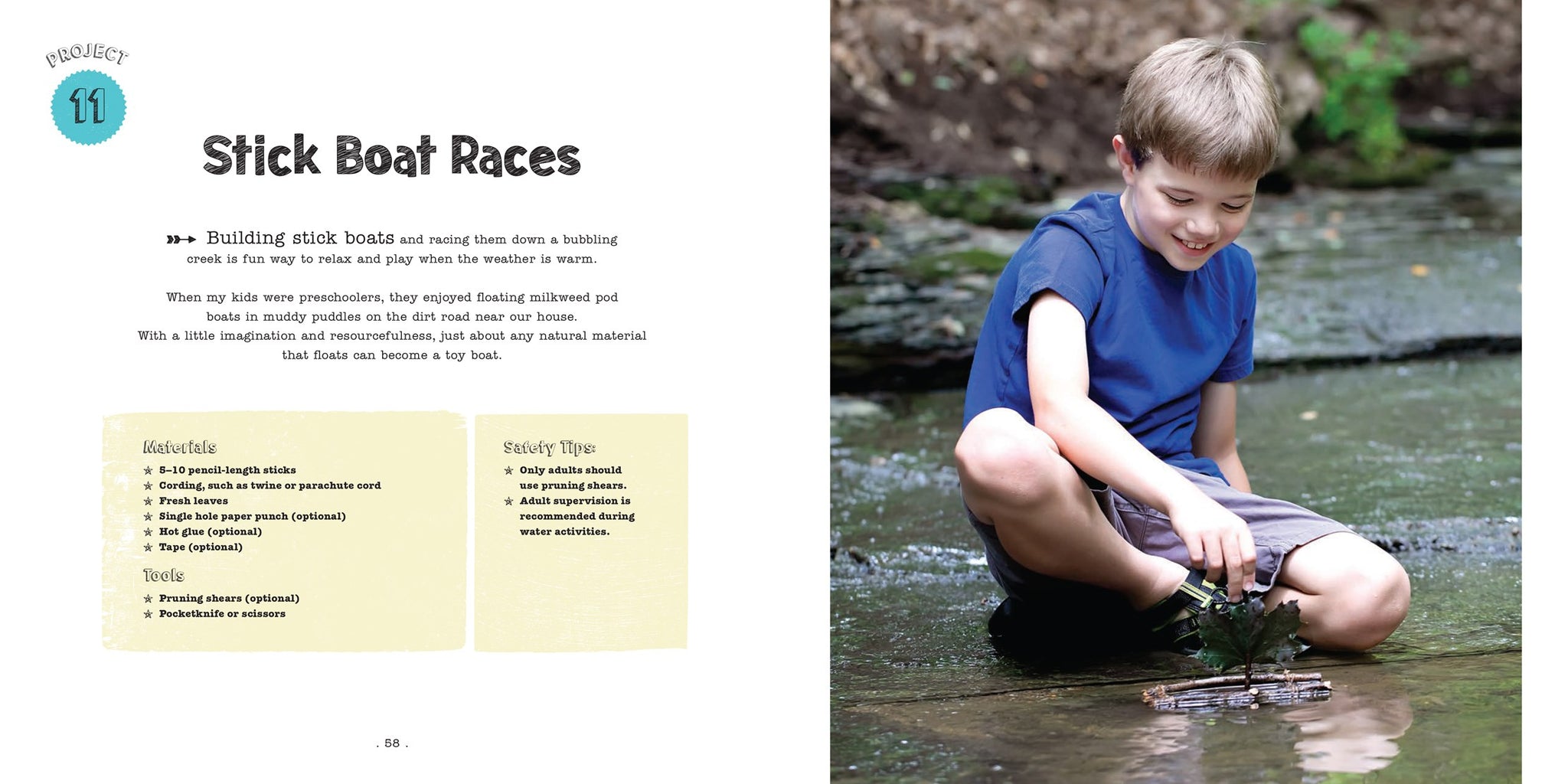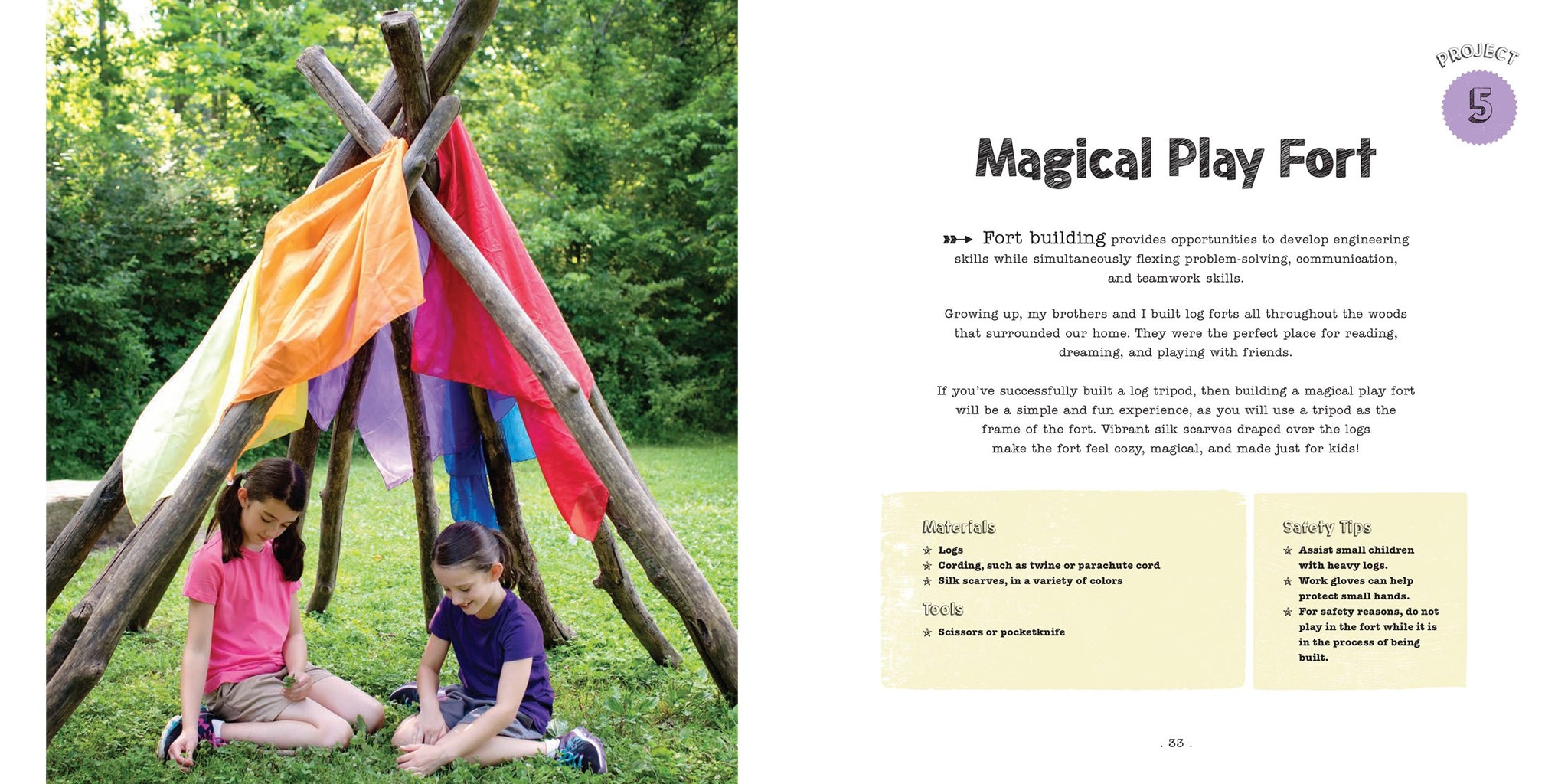 Kids will love building cabins, bridges, dams rock gardens, and more. They’ll discover that creating art is more fun outdoors as they learn to make making stone pendants, ochre paint, and weaving. A variety of large and small-scale activities boost engineering, creative, and problem-solving skills, all while promoting fun. With simple tools and materials a branch becomes a fishing pole, and logs turn into a simple seesaw.