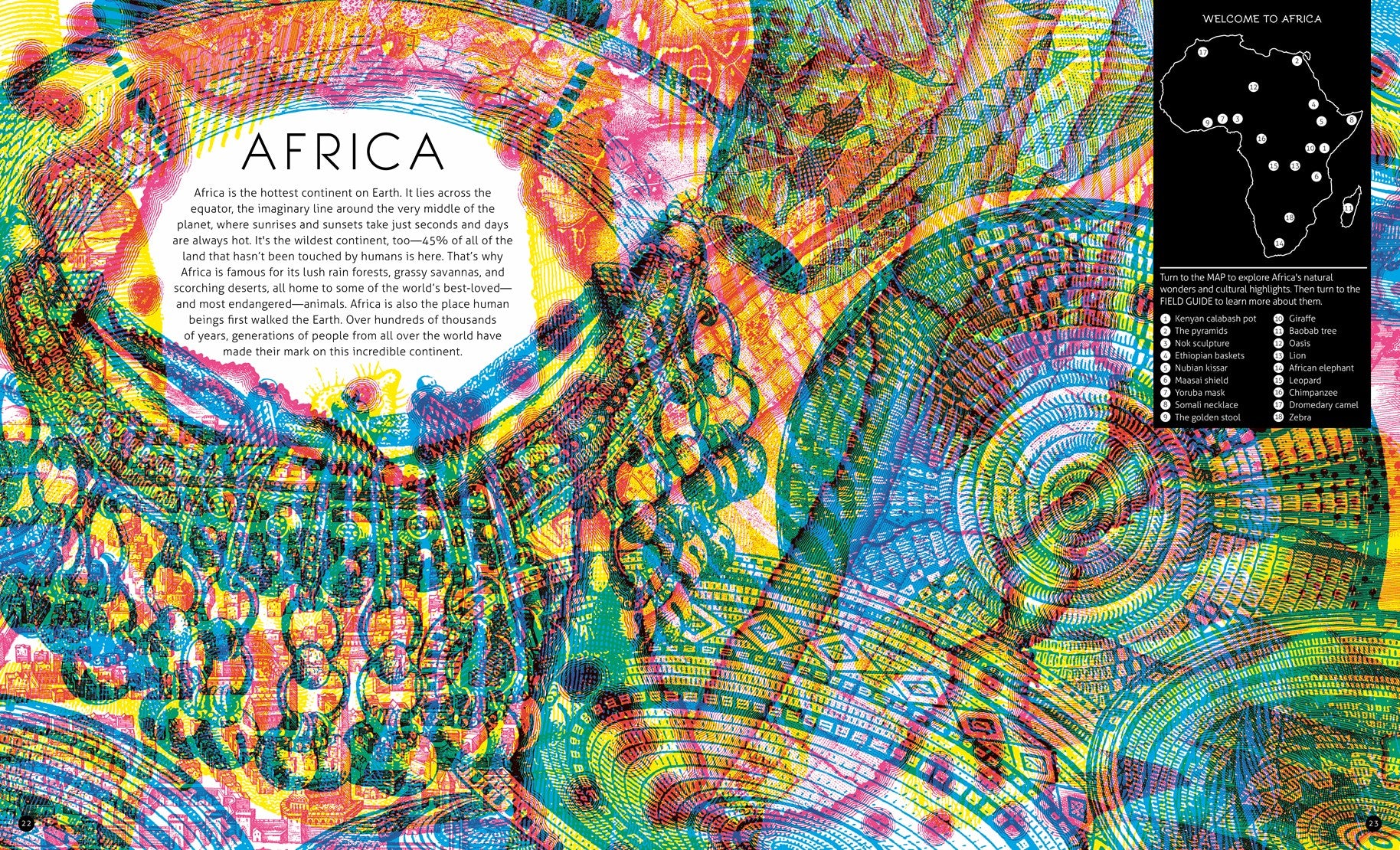 Each chapter begins with an introduction to one of six continents: Asia, Africa, Europe, North America, South America, and Australasia & Oceania.
