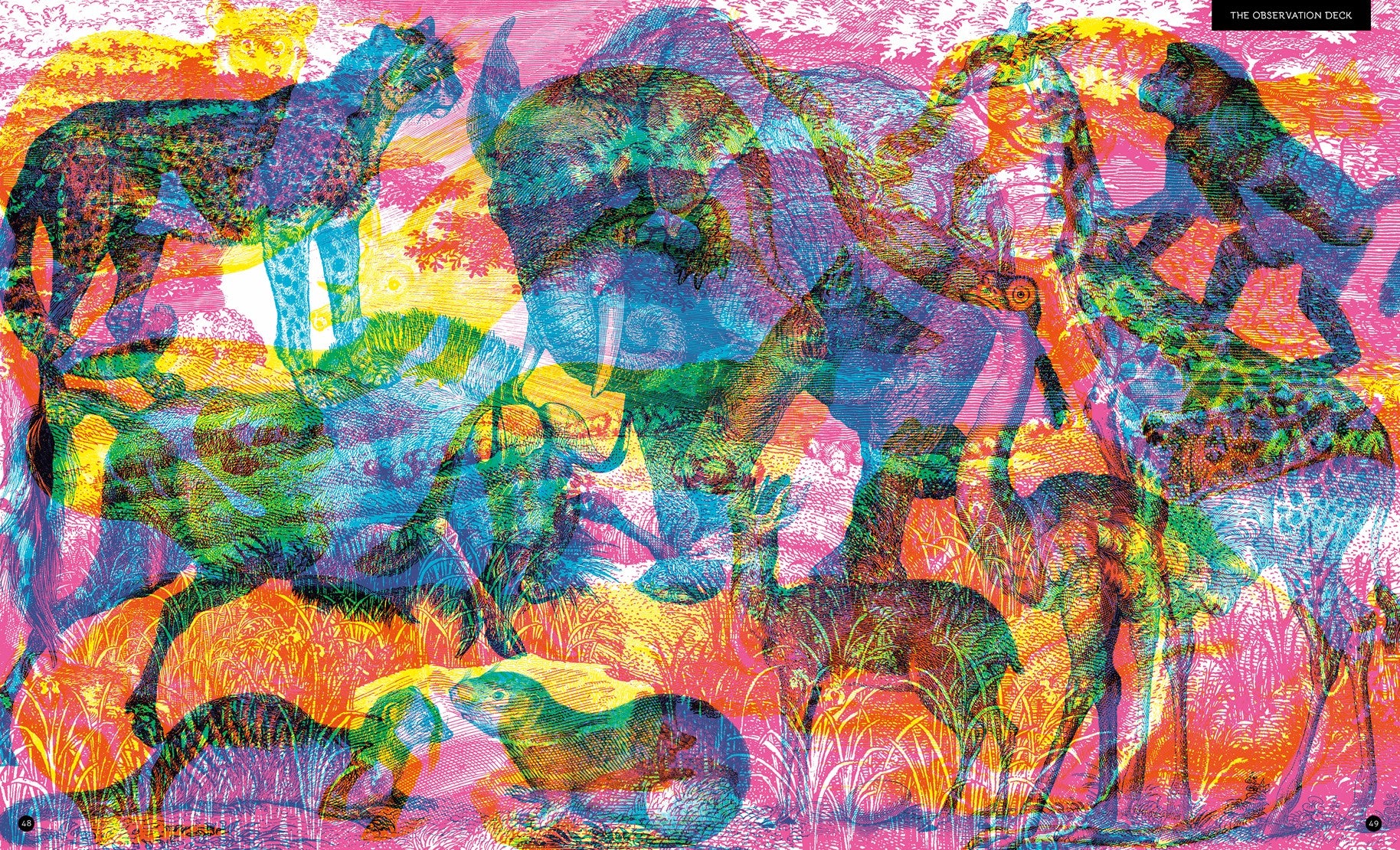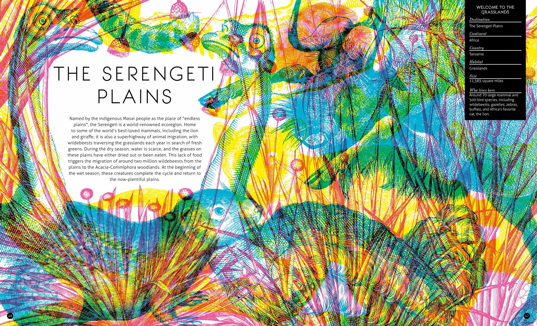 Bringing together content from five books in the iconic Illumi series, this new treasury spans the best of Nature, Oceans, Bugs, and Dinosaurs – across six continents. Each spectacular artwork is really three images in one: use the magic lens to reveal different layers to the environment you’re in.