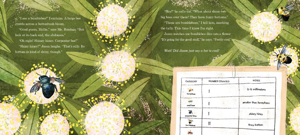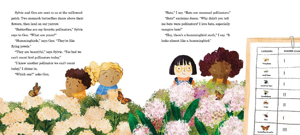 Today Mellie and her friends are excited to participate in The Great Pollinator Count. Everyone is hoping that the school garden will attract even more pollinators than they counted last year. Mellie and her friend Sylvie invite Jason, a new kid in their class, to come along. When Jason surprises them by showing up for the count, they find out that he is not at all interested in counting icky bugs.
