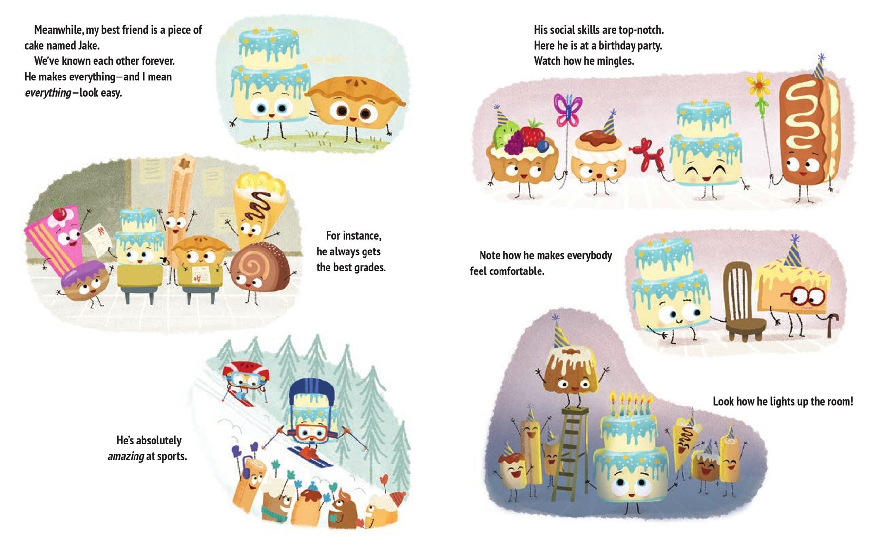 But when he’s paired with his best friend, Jake the Cake, for a school project, he soon realizes that staying in the shadows isn’t always as sweet as pie. Readers of all ages will laugh along as their new pie pal discovers that letting your voice be heard always takes the cake!