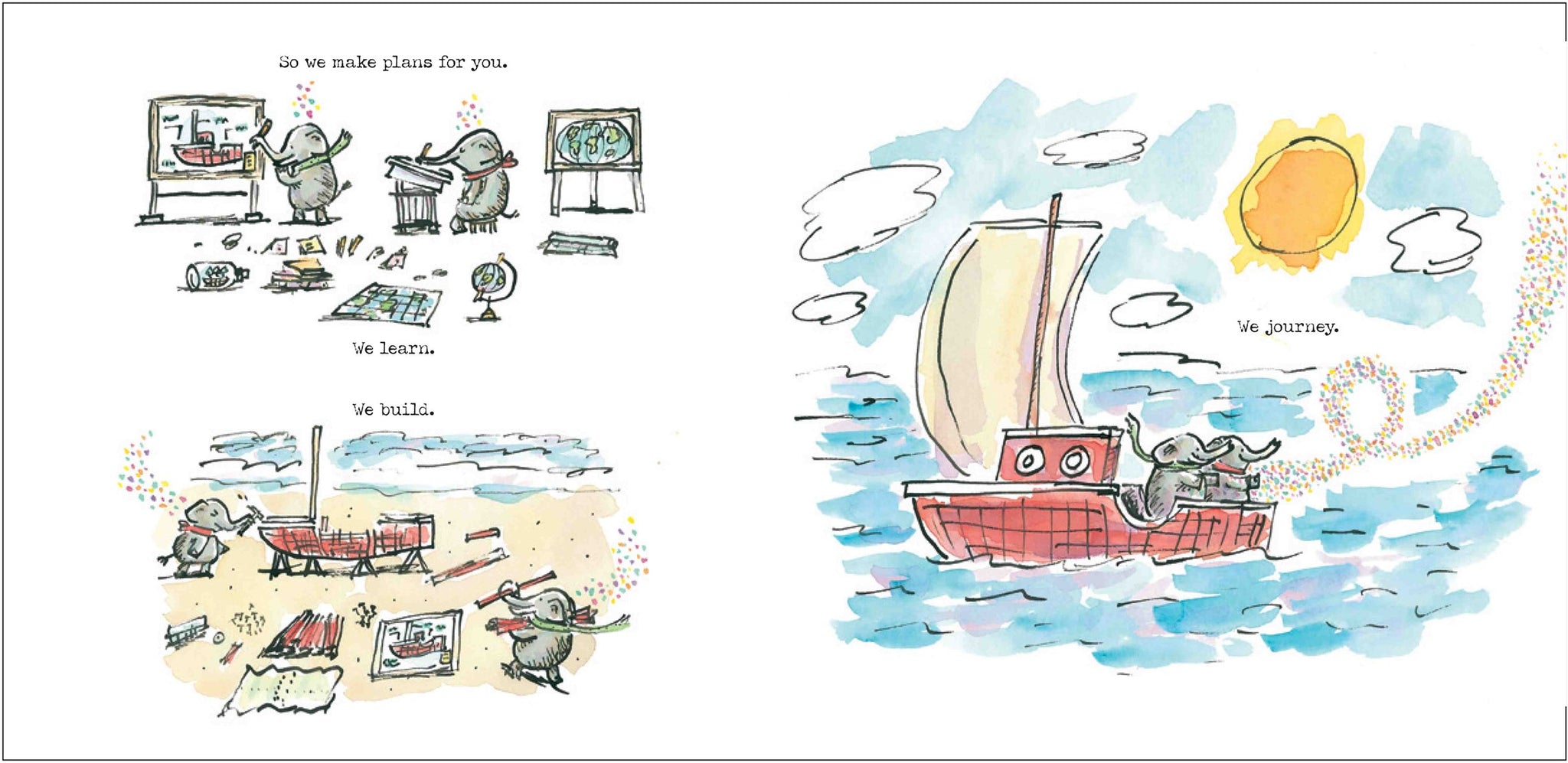 As an elephant couple embarks on their life together, thoughts of children are far away -- at first. But as the desire for a child grows, so do unexpected challenges. And it's only after thwarted plans and bitter disappointment that their deepest wish miraculously comes true. This "deceptively simple" story celebrates the profound joy of becoming a parent.