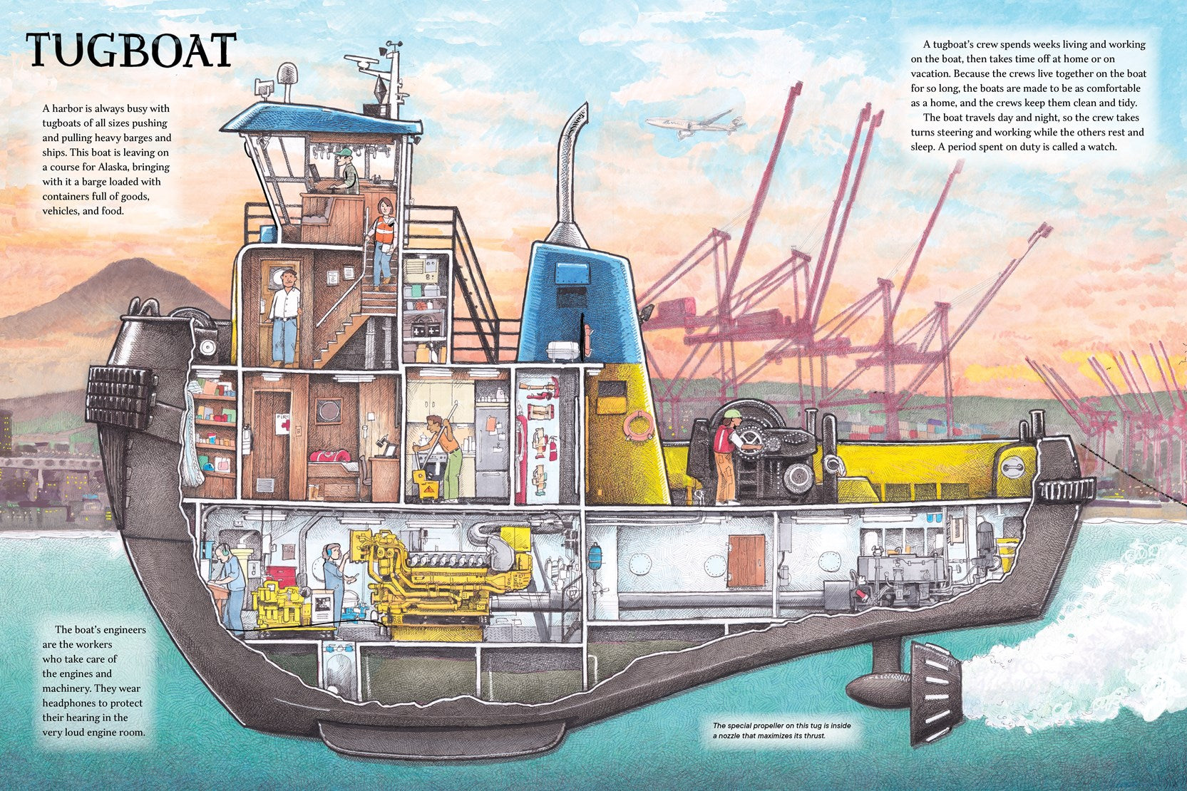 This visually engaging book filled with cross sections and exploded views of working boats is perfect for children--and even adults--curious about the mechanics of boats and the lives of people who work on boats.