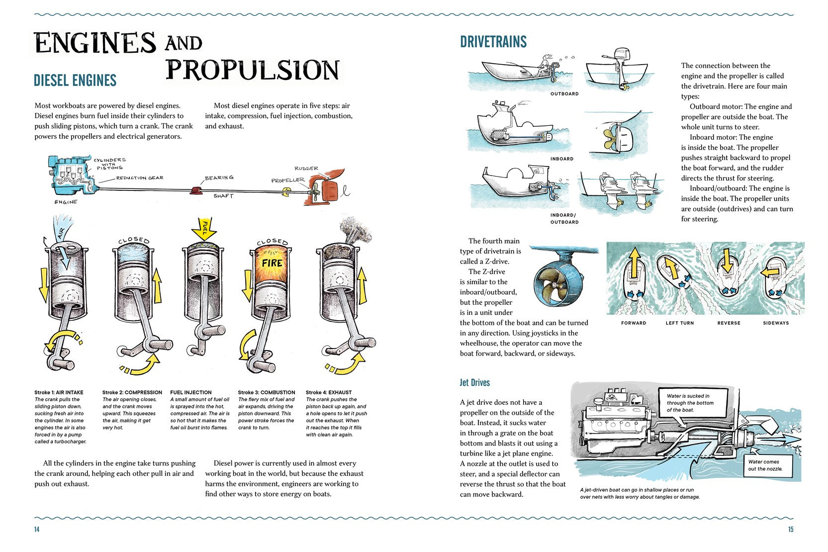Packed with information that's fun and practical, the book also includes details about maritime instruments, such as how a radar works, on-water safety gear, diesel engines, and mechanics, such as how water is pumped through a fire boat.