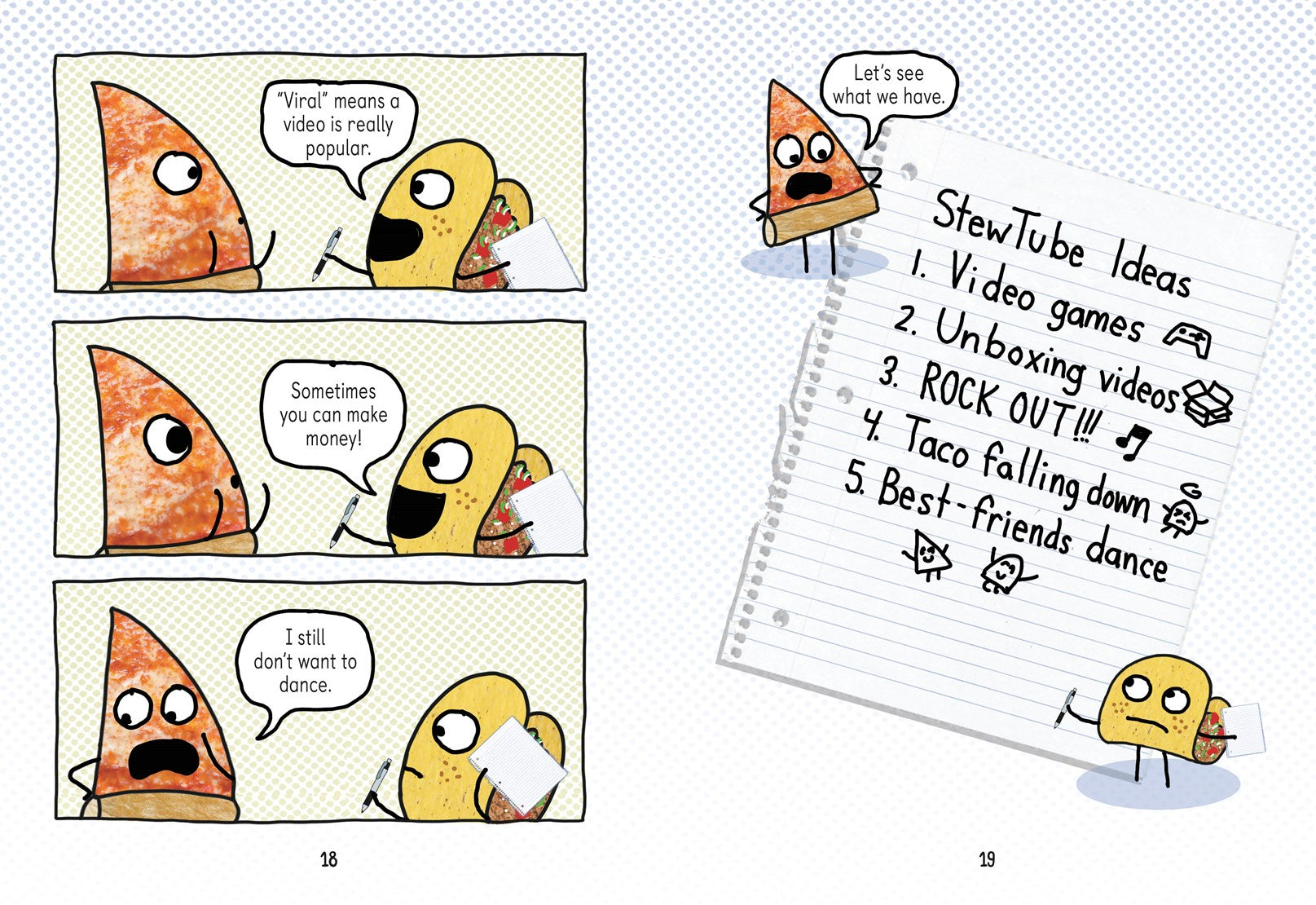 Streaming live on StewTube: Pizza and Taco!!! These foodie besties are on a mission to go viral! Will they get lots of likes for their awesome video? Find out in book #10 in the best-selling chapterbook graphic novel series!