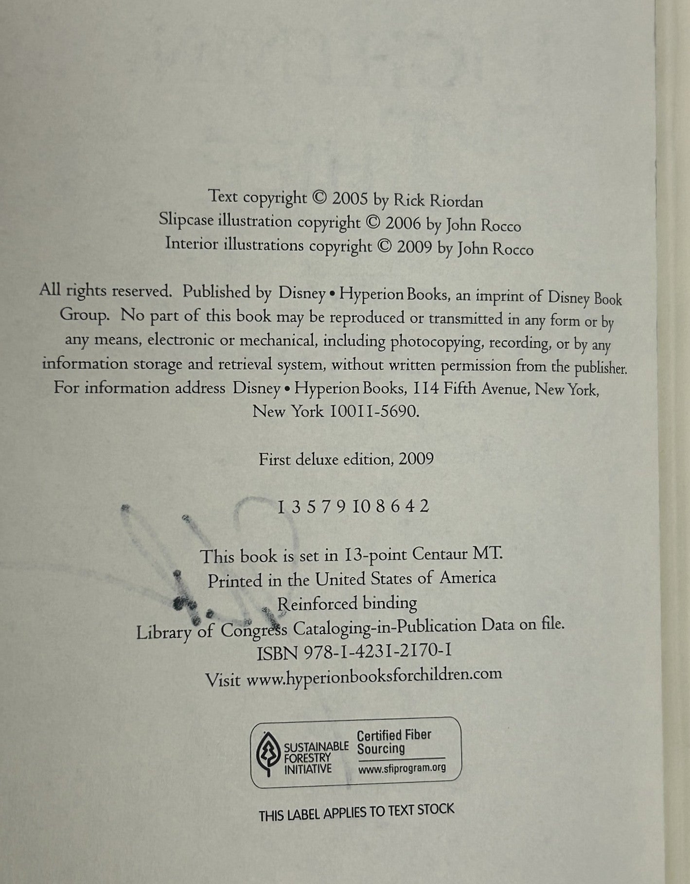 In this stunning collector's edition, Percy's world is brought to life with full-color illustrations by the series jacket artist John Rocco. The edition comes in an elegant slipcase with a ribbon bookmark and cloth cover, a perfect keepsake for fans of this truly epic series.