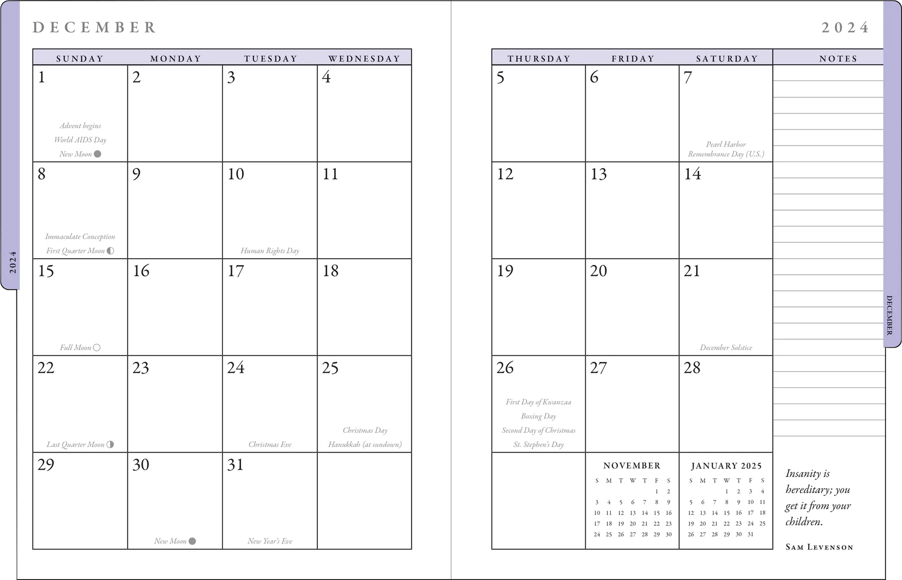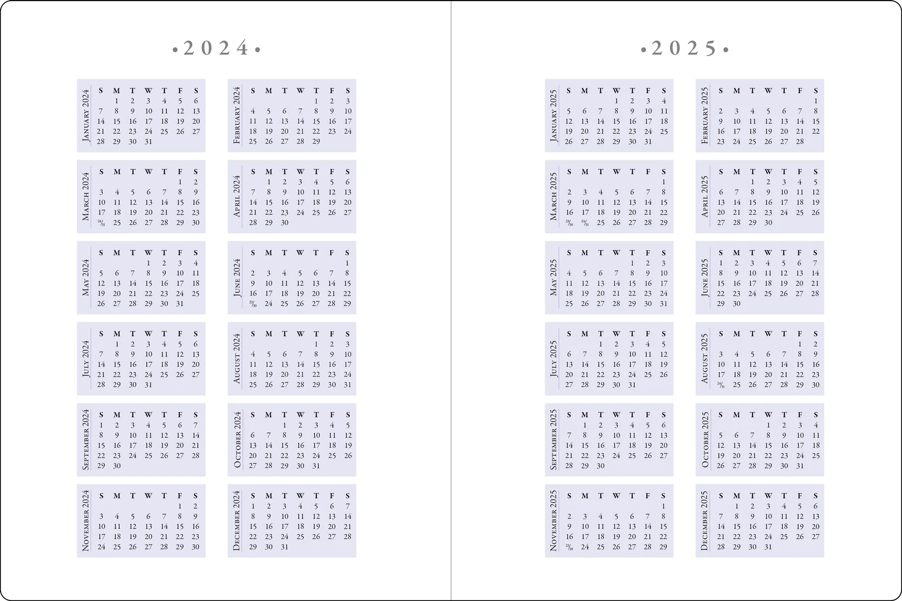• Includes major holidays and observances for planning purposes.