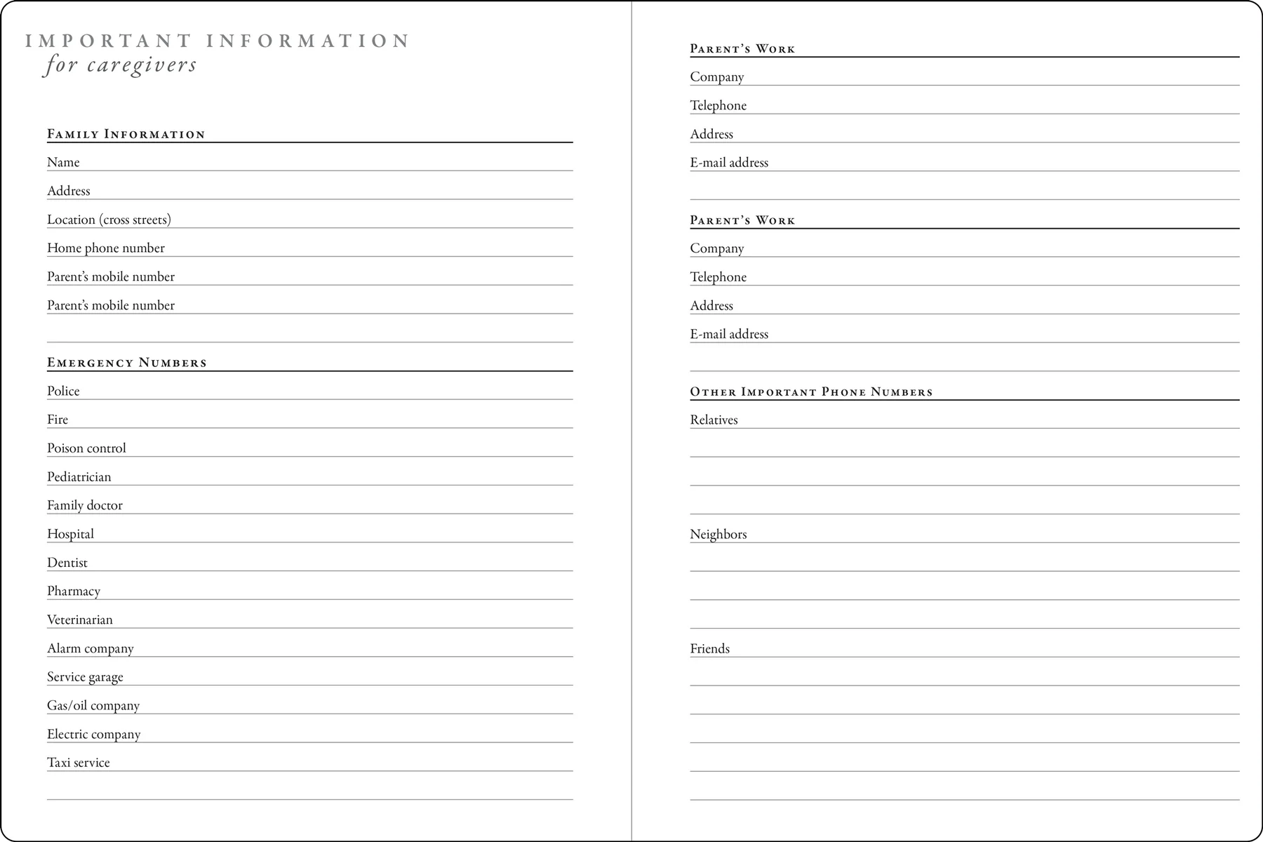 • Includes 2 fill-in pages of contact and emergency information for babysitters.