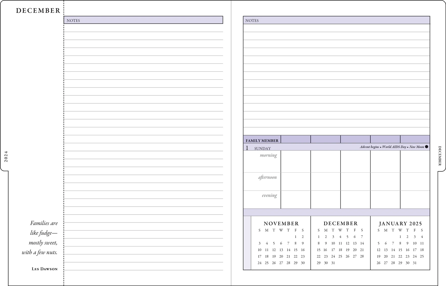 • Planner lies flat for ease of use.