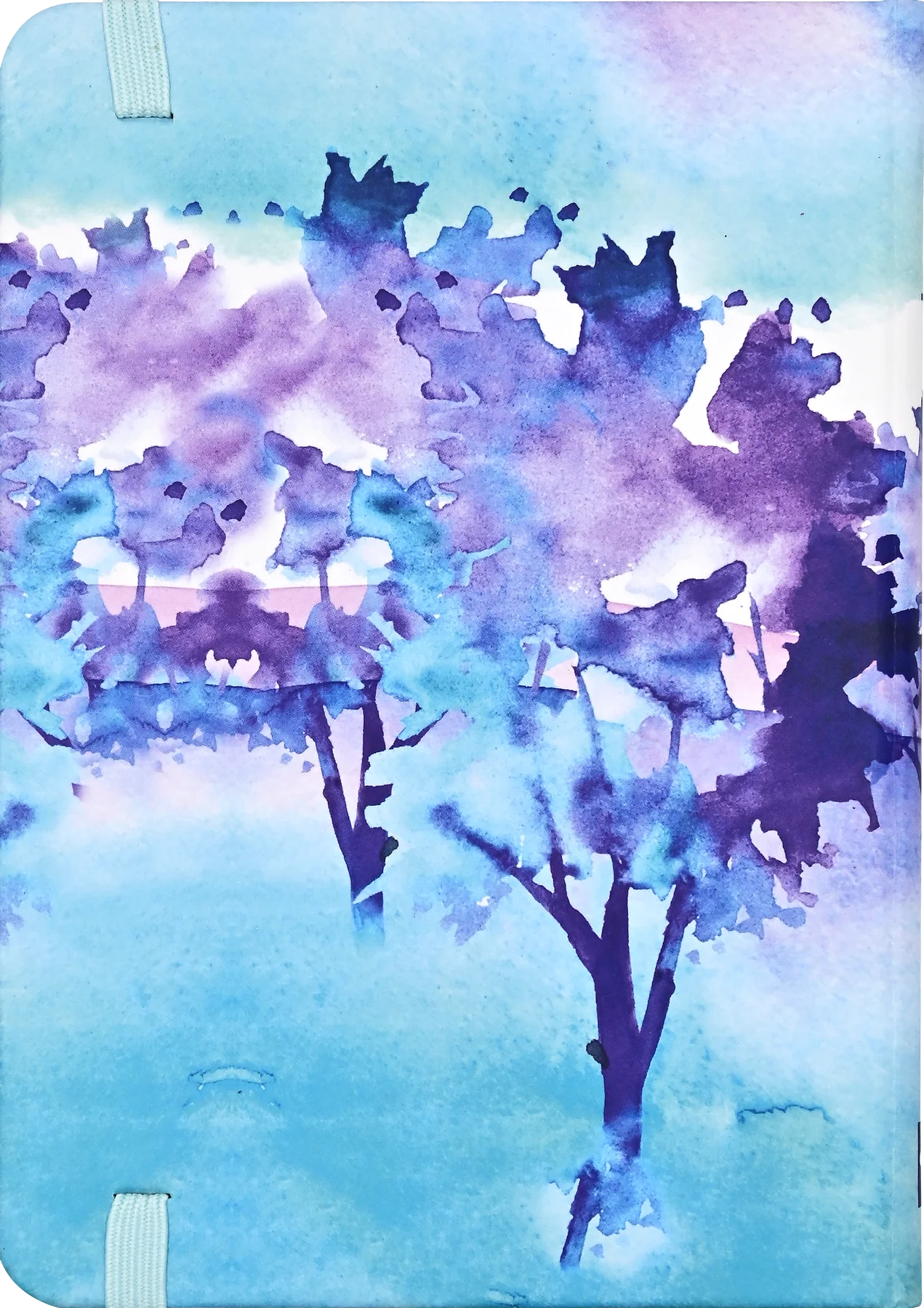• The cover design features a moonlit landscape awash in watercolor blues and pinks.