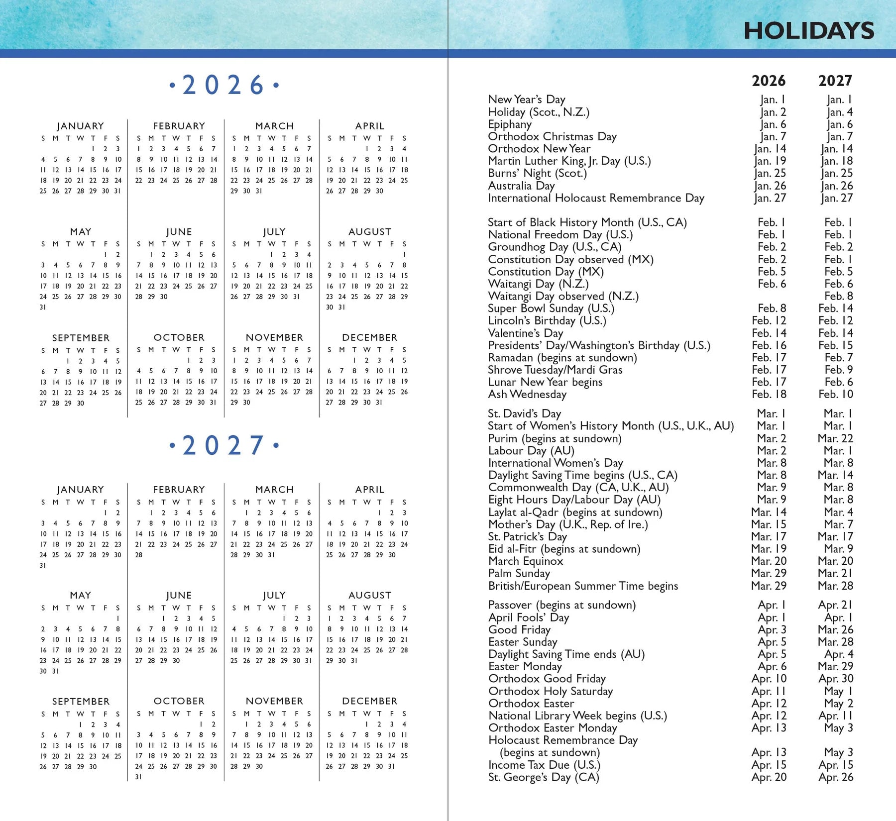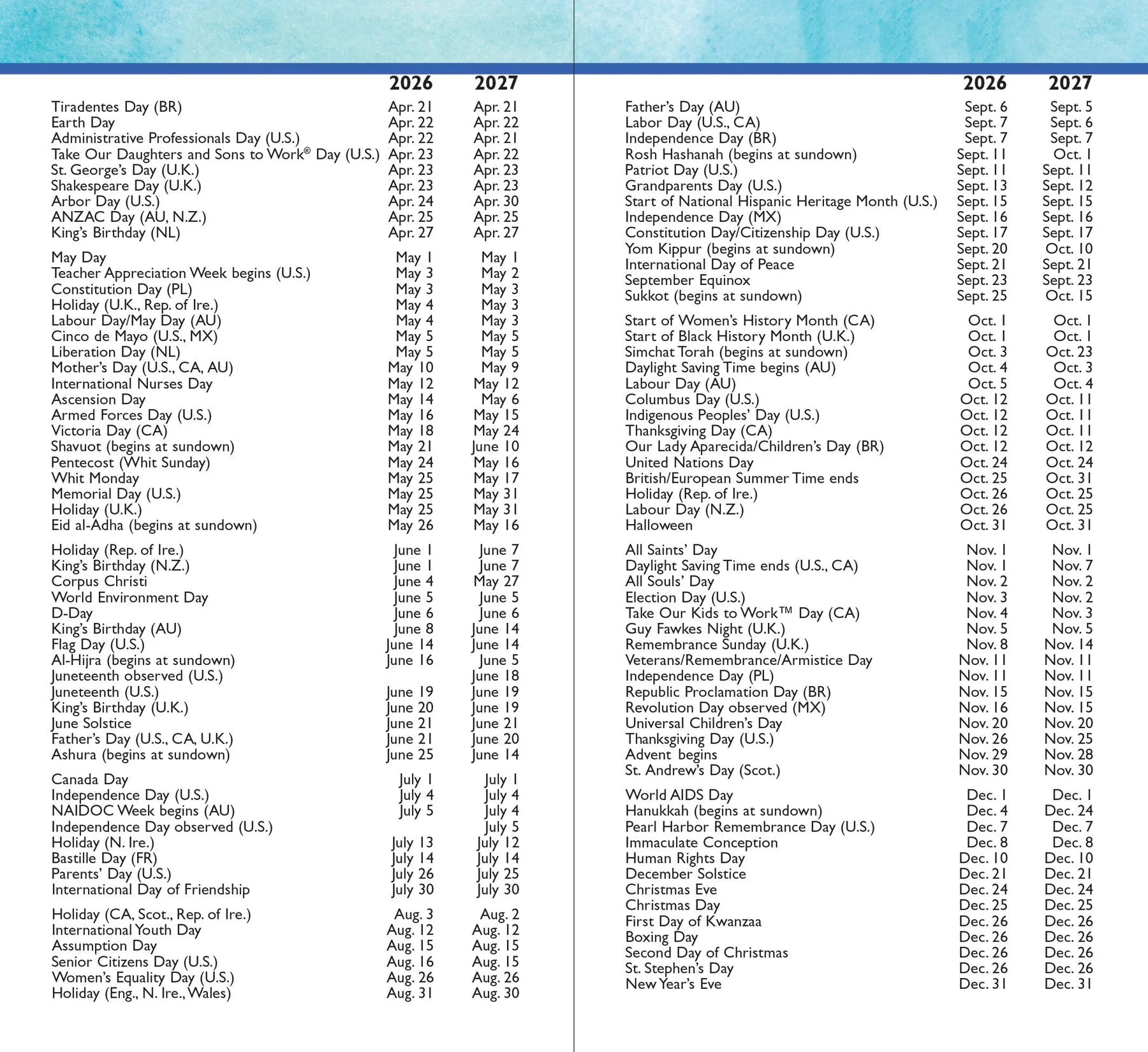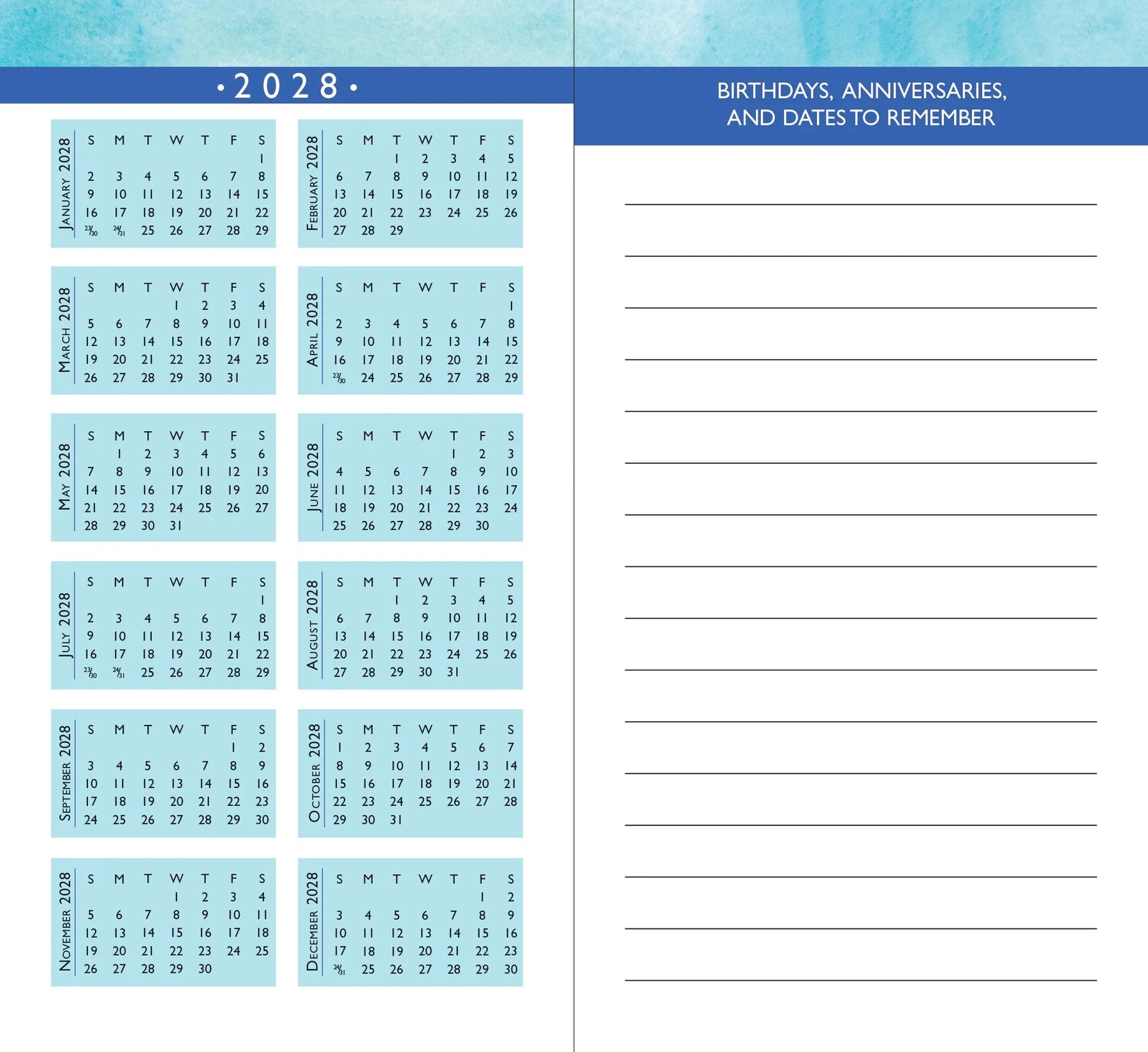 - Includes a page to note birthdays, anniversaries, and other dates to remember.