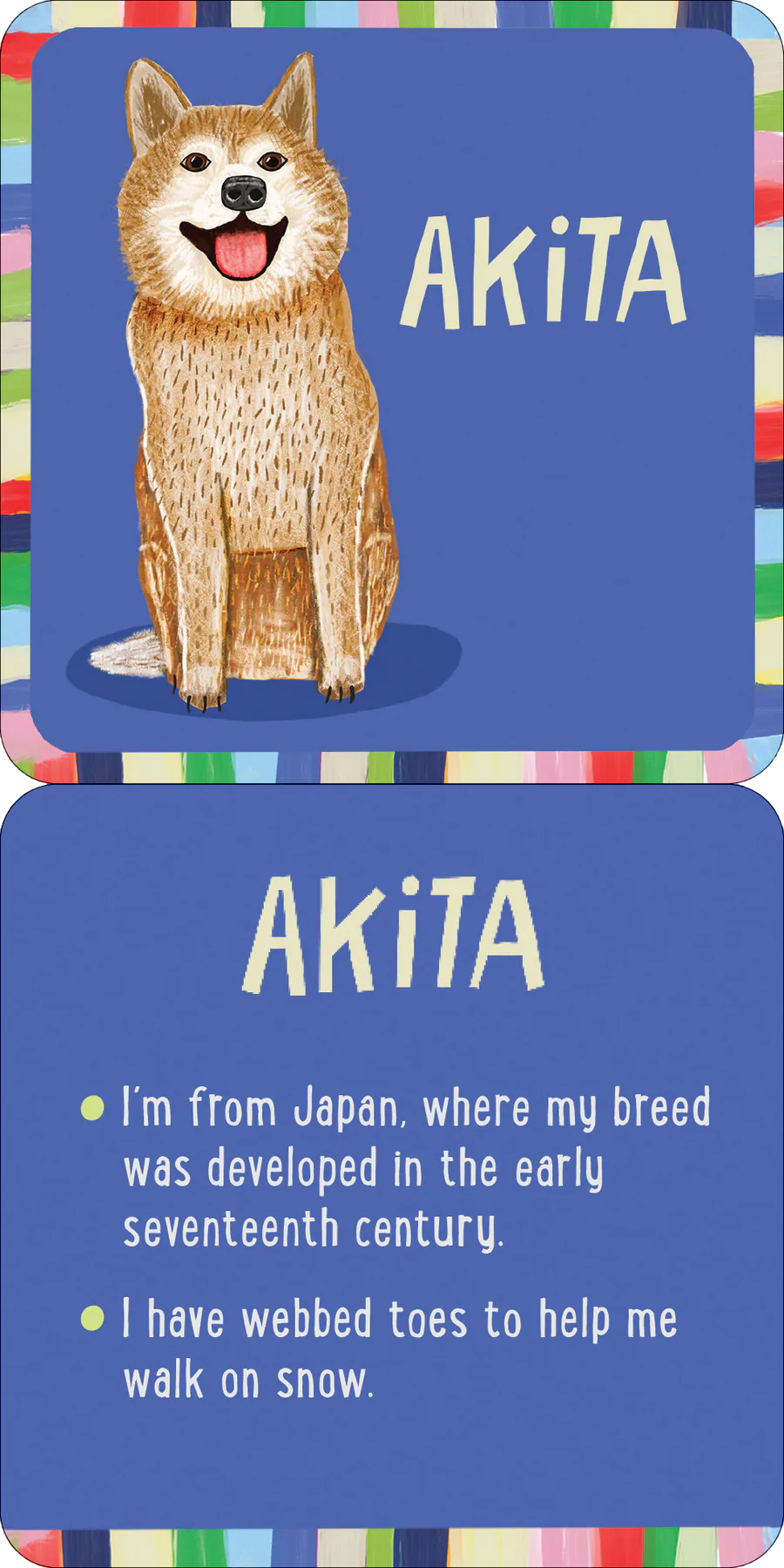 - Each card introduces kids to a different dog breed, from the petite Pekingese to the giant Saint Bernard.