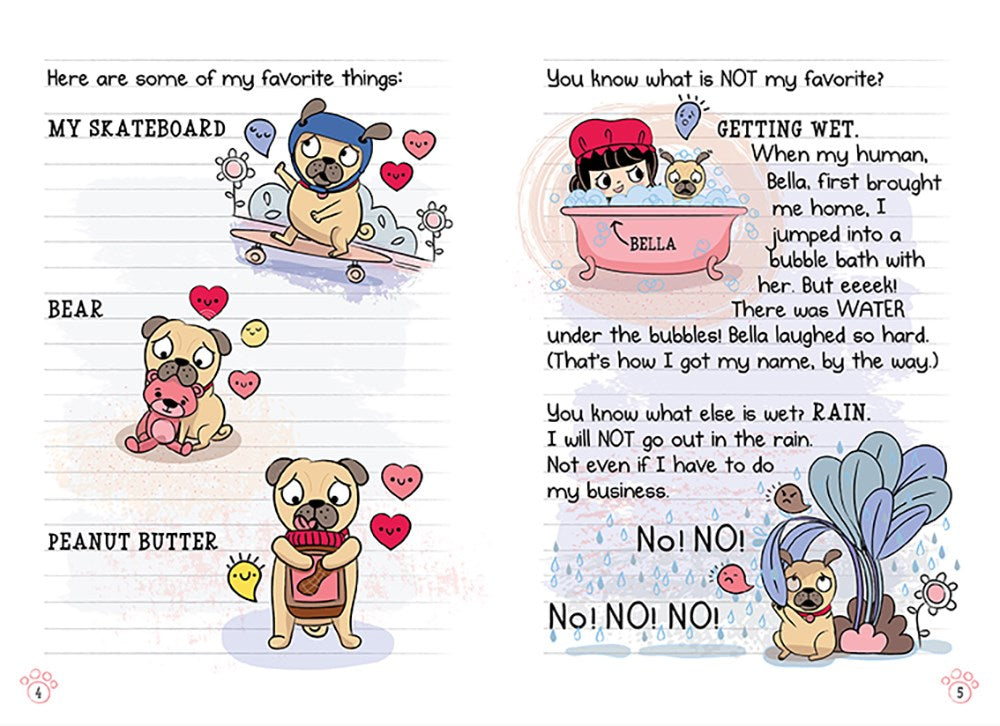 Pick a book. Grow a Reader! This series is part of Scholastic's early chapter book line, Branches, aimed at newly independent readers. With easy-to-read text, high-interest content, fast-paced plots, and illustrations on every page, these books will boost reading confidence and stamina. Branches books help readers grow!Meet the cutest pug on the planet! Bella and Bub are at the beach with their friends Jack and Luna for a dog-surfing contest. But when Bub realizes the ocean is full of water, Bella’s plans to win crumble like sand. Then Bub finds a treasure map! Will finding the treasure save the trip from turning into a total wipeout?With full-color artwork throughout, this funny and charming diary-format early chapter book is perfect for anyone who believes a furry pal is the best kind of friend.