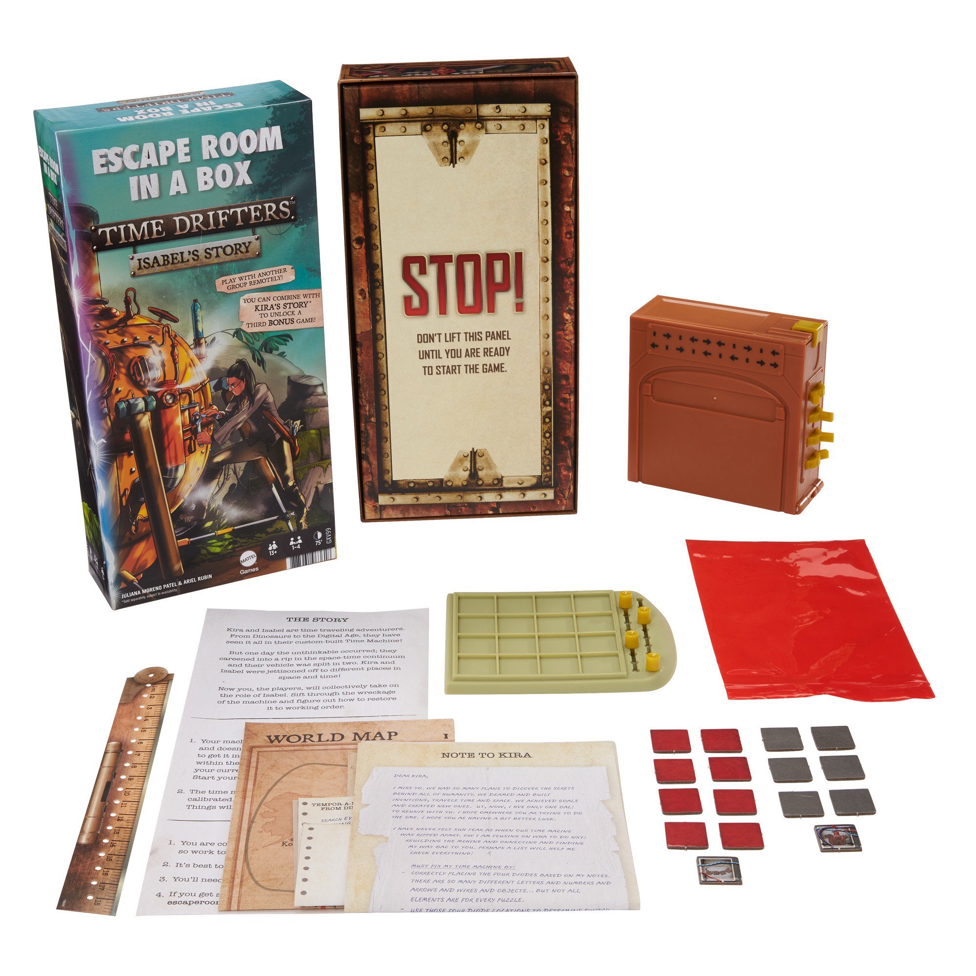 The Time Drifters two-part series of Escape Room in a Box games is a thrilling puzzle-solving hunt with a twist: finishing both games unlocks a bonus 60-minute game that can be played remotely! The story is this: Isabel and Kira are time traveling adventurers. When a rip in the space-time continuum opened, their time machine ripped in half, trapping them in different locations and points in time. Now, players must work on their own or with up to 4 players to gather clues and solve the puzzle box. Once Isabel's Story and Kira's Story (each sold separately) are completely solved, a third extra game is unlocked with more time travel mysteries! The third game can be played remotely using an online video conferencing system. This exciting board game brings big, curious fun to any game night and makes the perfect gift for puzzle-solving enthusiasts ages 13 and older. Colors and decorations may vary. You can purchase Kira's Story, sold separately, to fully unlock the bonus game.