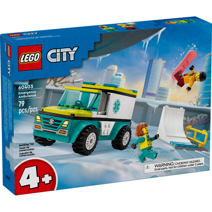 • Toy ambulance playset – Join your little builder for quality playtime with this LEGO® City Emergency Ambulance and Snowboarder building set for kids aged 4 and up