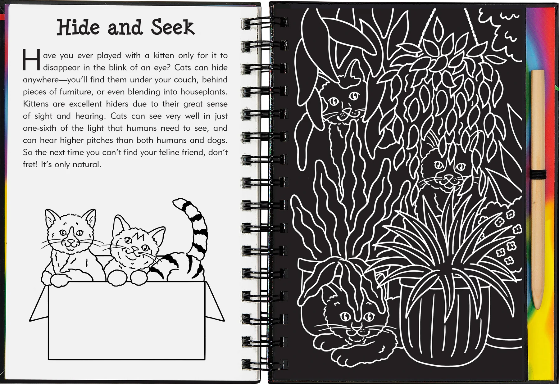 - Trace the white lines to reveal different kinds of kittens in action in glittering foil and colorful swirls.