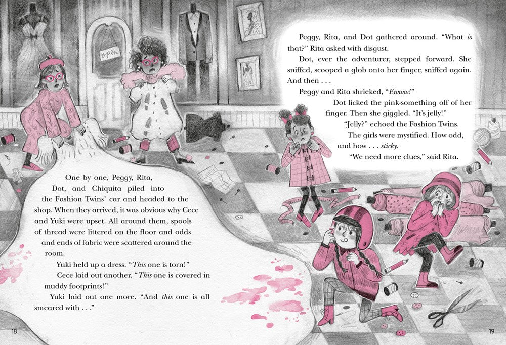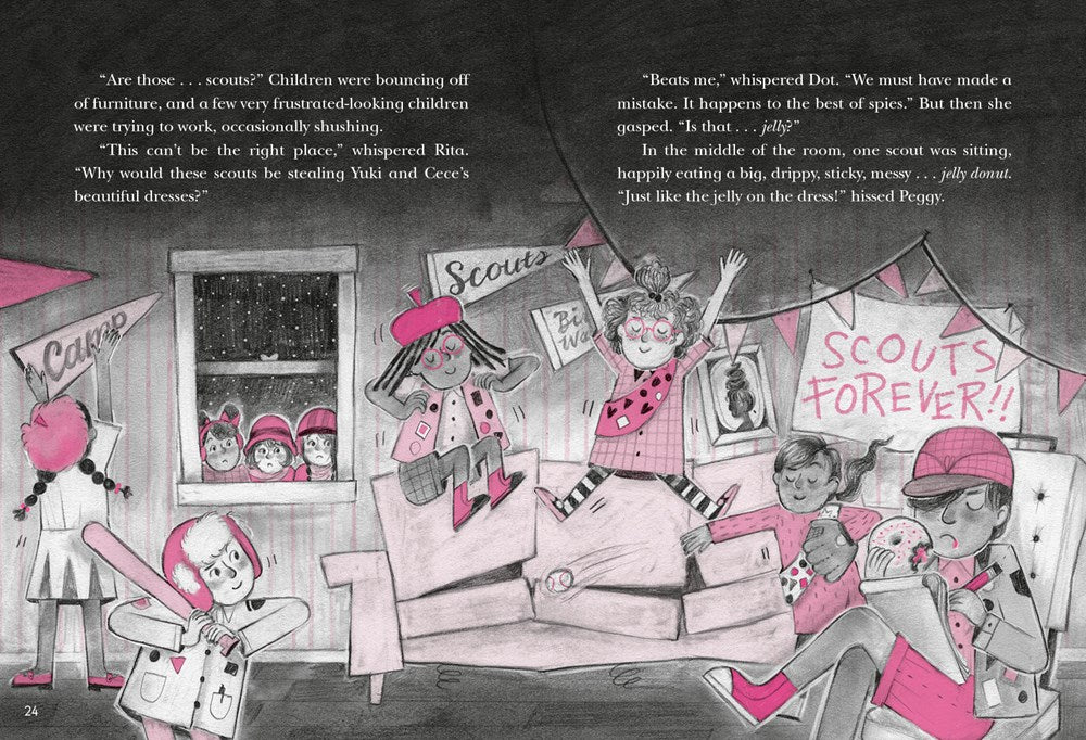After officially naming themselves the Petite Private Eyes, Peggy, Rita, and Dot are ready to take on a new assignment from the Lady Spies. The Fashion Twins, two local designers, have been robbed! When the girls go undercover to investigate, they find themselves joining a curious scout troop run by a mysterious scout leader. With the help of the Lady Spies and a feisty pet cheetah, will the girls crack the case and make some new friends?